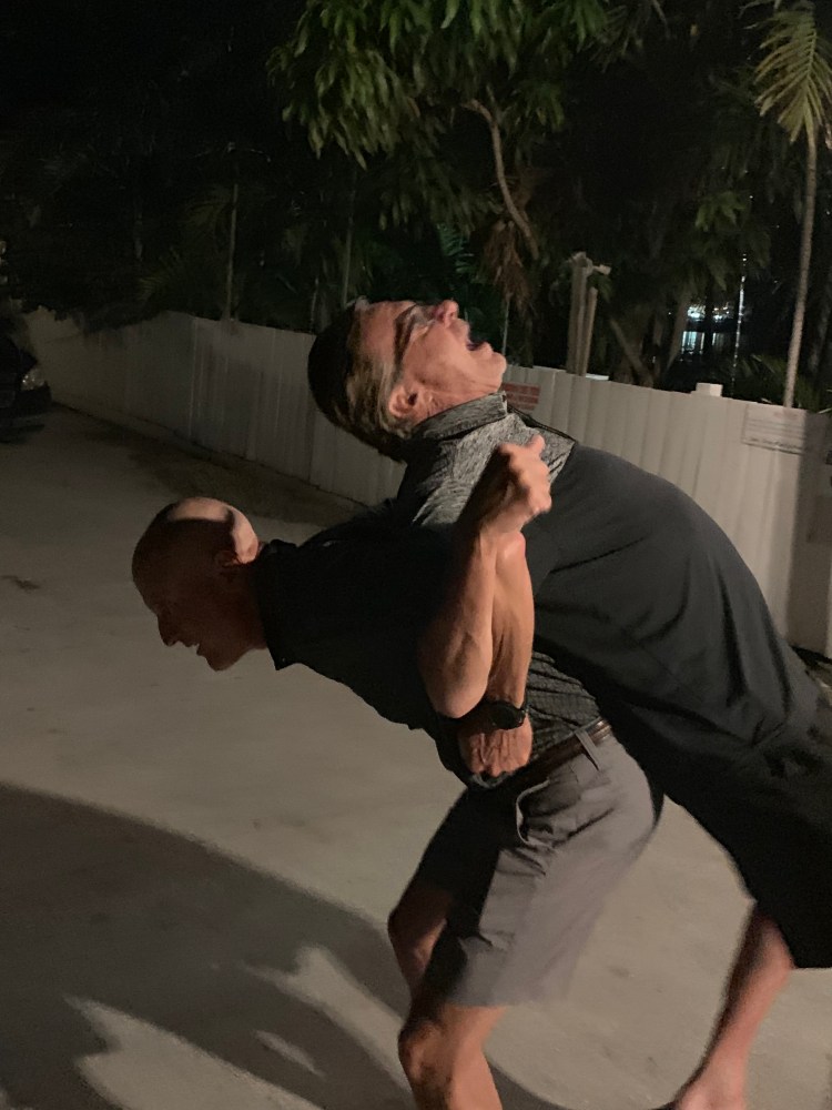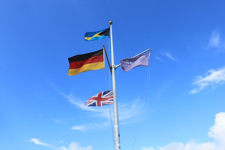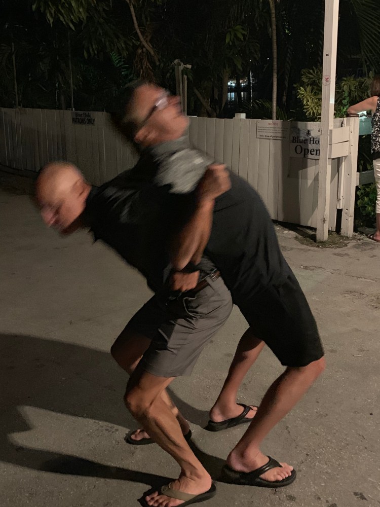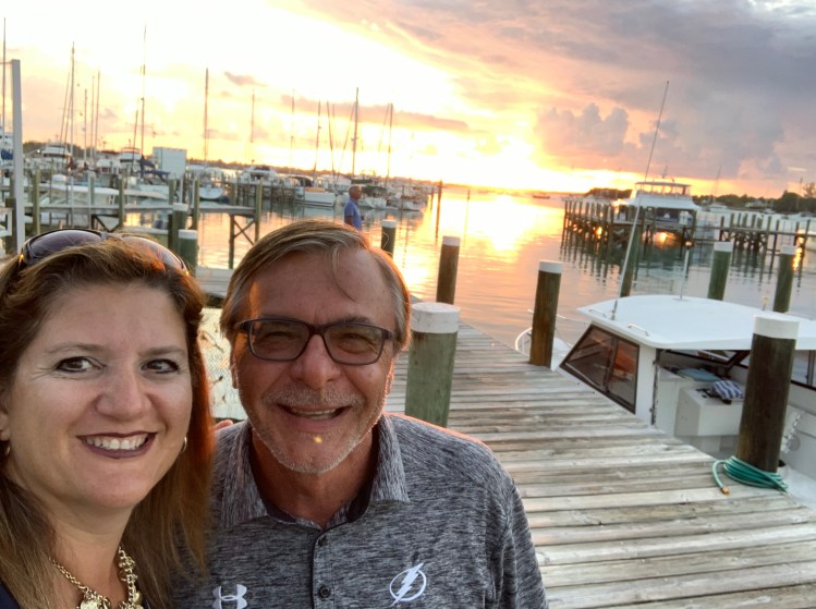 Then we had to check out the pool bar and that’s where we found our new addition Peedo and Christine Torres from the neighborhood. They flew in today only to be diverted to Treasure Cay because of a water spout. Happy they made it safe!