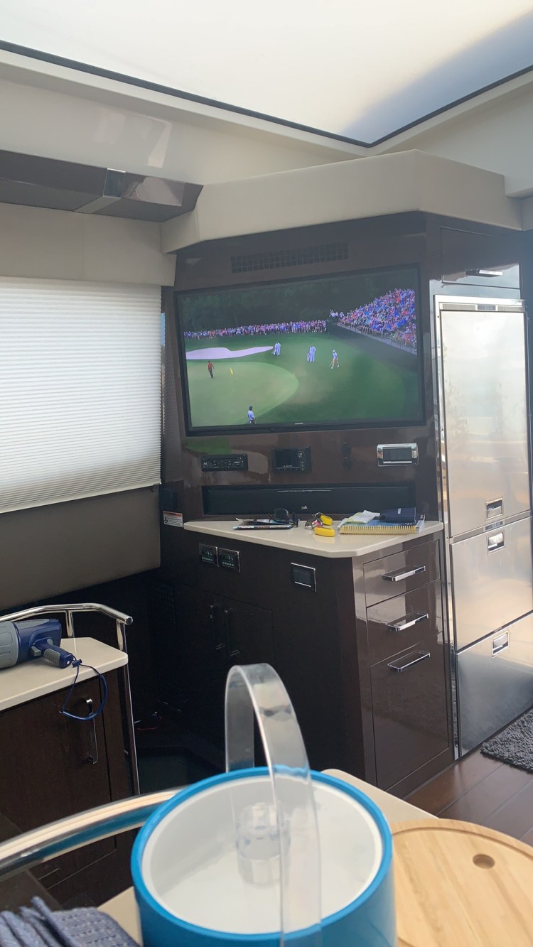 This was Sunday at The Masters so we stayed in to watch Tiger make his big comeback! It was great! We have Dish TV on the boat but it was on the local CBS so we had to get linked up with a zip code. After much searching we found that the Bahamas don’t have zip codes or postal codes so we gave the Dish guy a Miami zip code and that worked. Watching the Masters is something Nick and I have done every year together. It’s an amazing tournament and I’ve always loved watching it with my Dad and now Nick!