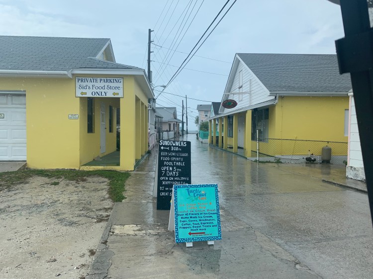The yellow building on the right is Sids Grocery store. We met Sid.