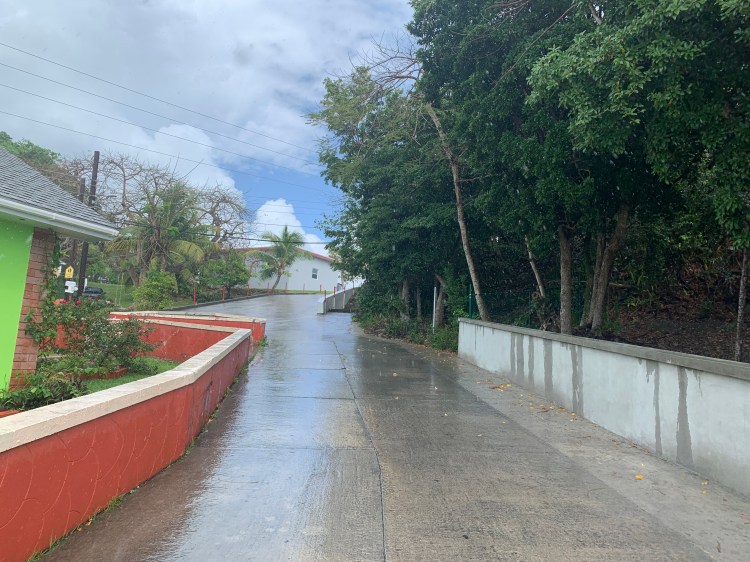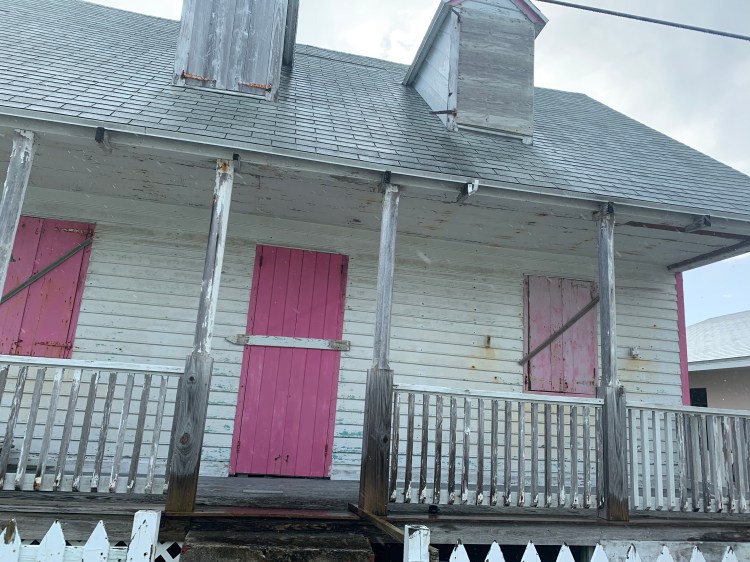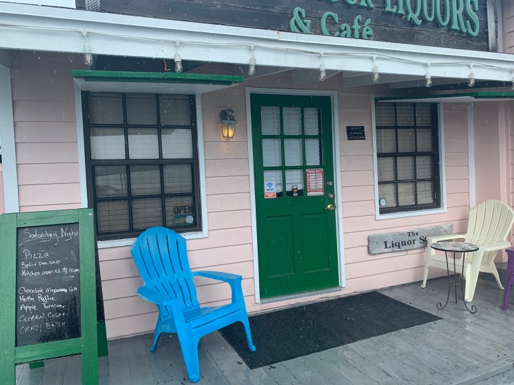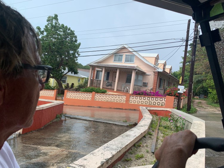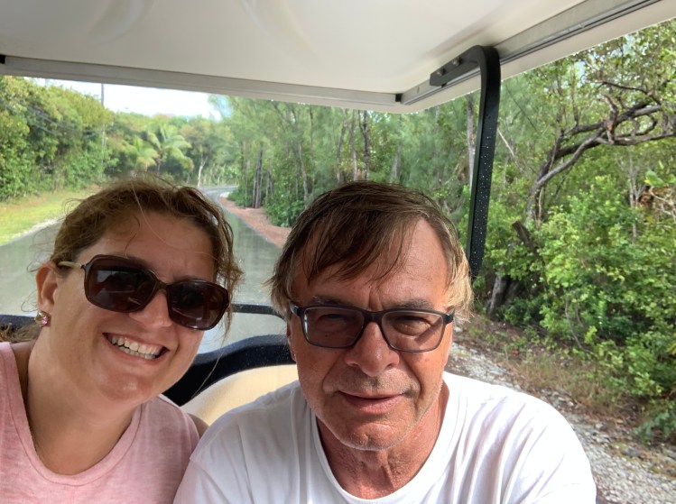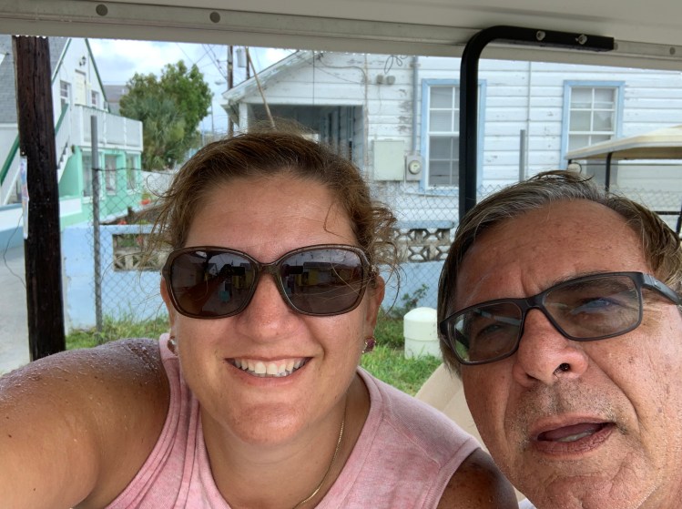 After the big win we took the golf cart to the big grocery store for a few item. When we pulled the route up on GPS Nick asked how far – – and I said – – with authority – – 41 km. Nick freaked and grabbed the phone from me – 4.1 km. Oops. It was a very small store. When we got there he was closing because he had to pick someone from the ferry. We were lucky we caught him. The town was cute but a bit destroyed.