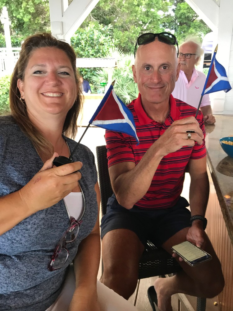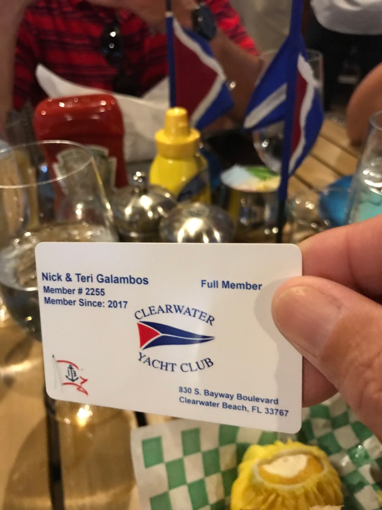 They actually Went to the trouble of getting the Clearwater Yacht Club Burgees and displaying them at the bar awaiting our arrival at happy hour! The folks here at Harbour Ridge yacht club are amazingly friendly. They gave us a golf cart to tool around and appreciate the entire facility that was available to us. We originally planned to stay here only one night, but it appears that we will be able to stay an additional evening in order to play golf tomorrow on a Pete Dye designed golf course