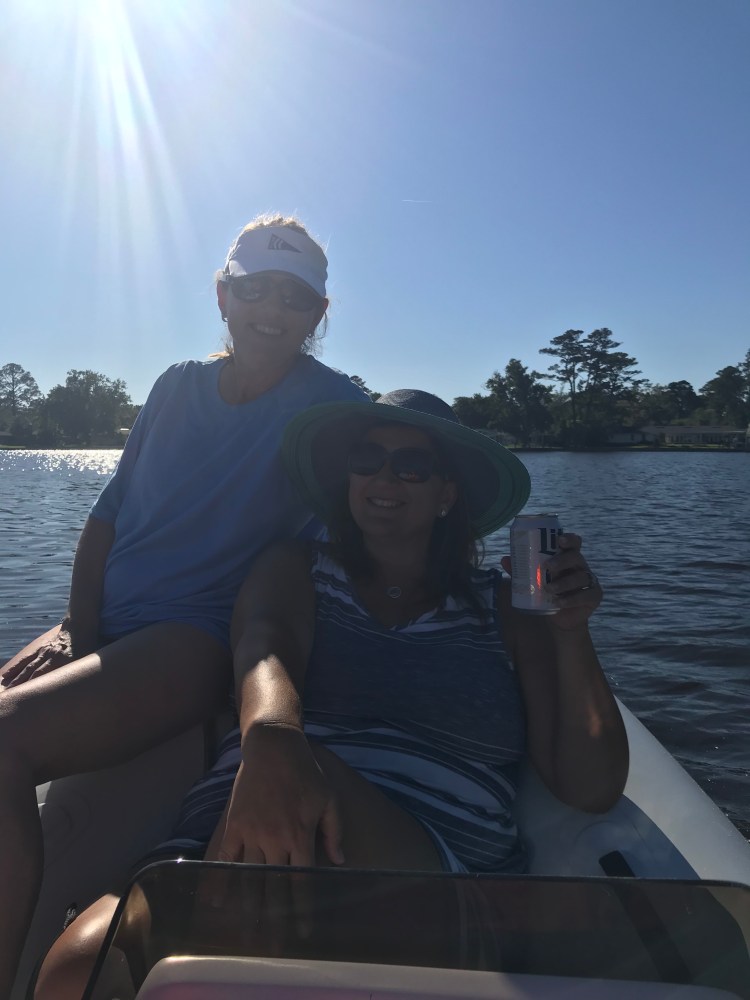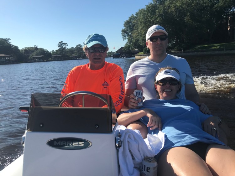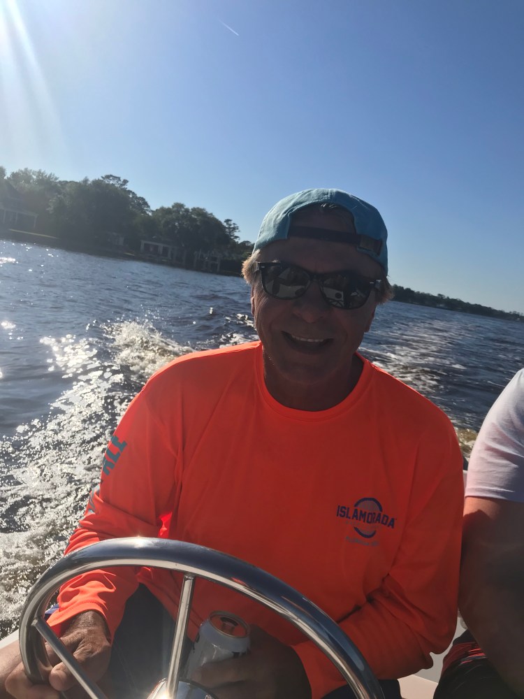 After our snack we tried out the pool but could only dip our feet – because the transformer blew they wouldn’t let us in it. Just as we are leaving Mom calls me for a FaceTime. Amber and Mom exchange recipe tips and I am lost on that conversation. Then we switch gears and jump in the dinghy for some adventures, also we wanted to test Nicks skills in maneuverability.