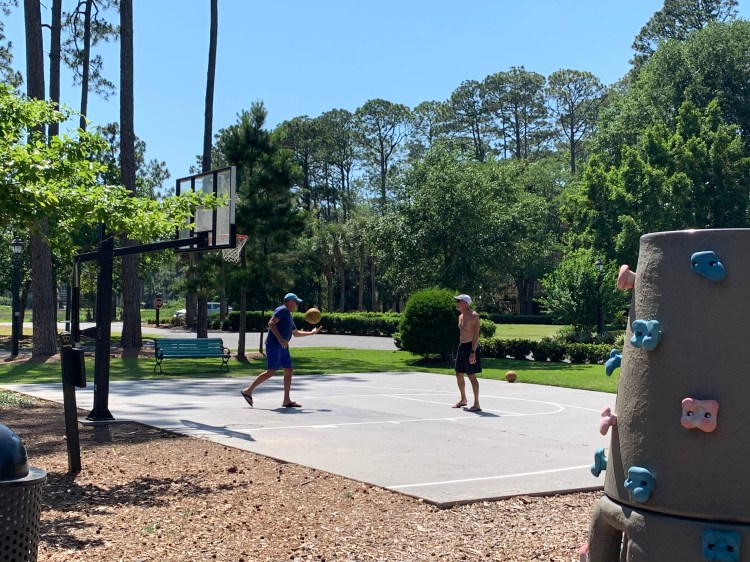 Nick and Jeff discovered a basketball court! It was right next to a playground.