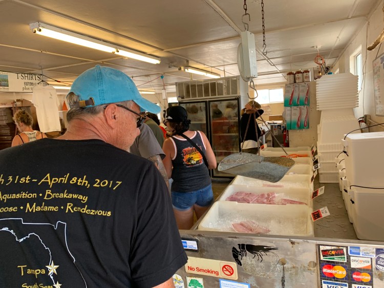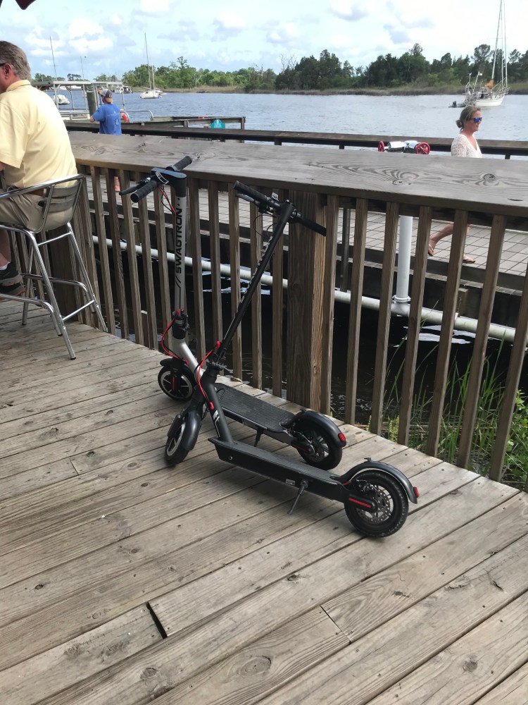 We met Honey Badger on our way out and invited them for Docktails! Took the electric scooters to the fish and shrimp market and got terrific Mahi Mahi and jumbo shrimp! We also met several bikers that are in town for bike week. Some of them knew our friend Martyn and his band Highway to Hell.