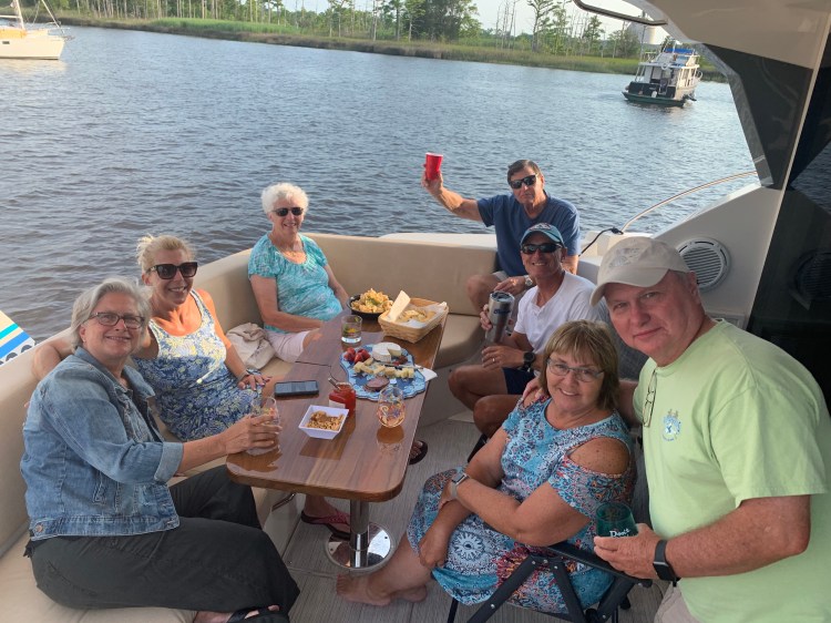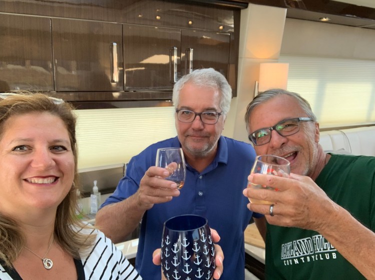 When we got back there was a Beneteau Trawler docked next to us with the Looper flag. Turns out Barry sold it to him as he did us our GT46. We invited them to happy hour as well and soon it was a party!