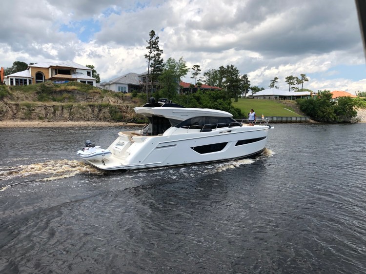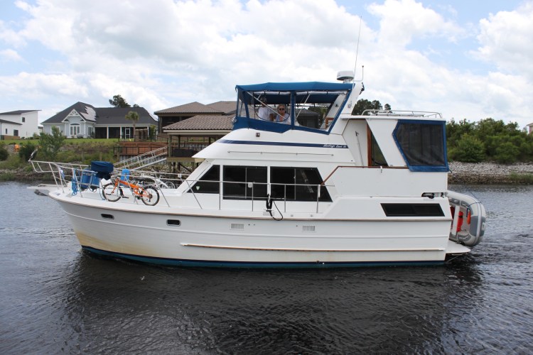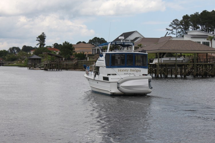 We woke up early and it was a great day for a cruise. Our new friends Desperado, Honey Badger and Floating Debt all took off earlier and were gone when we woke up. Their boats are Trawlers and have a top speed of about 8 miles per hour. Here’s a pic of Honey Badger and Floting Debt as we passed them.