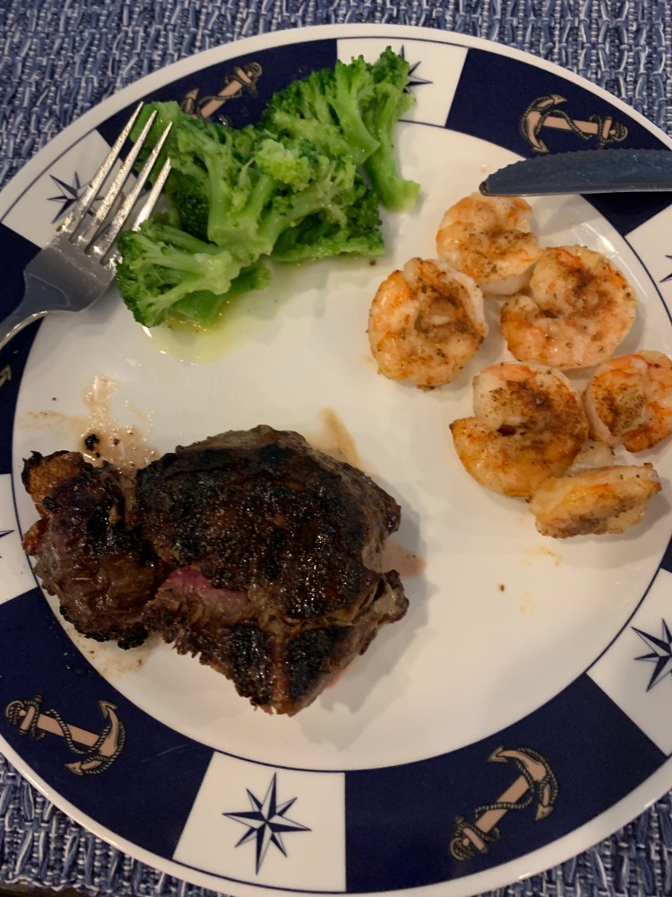 The steak was from Hilton Head Grocery store and the shrimp from Georgetown Fish Market! Surf n Turf!