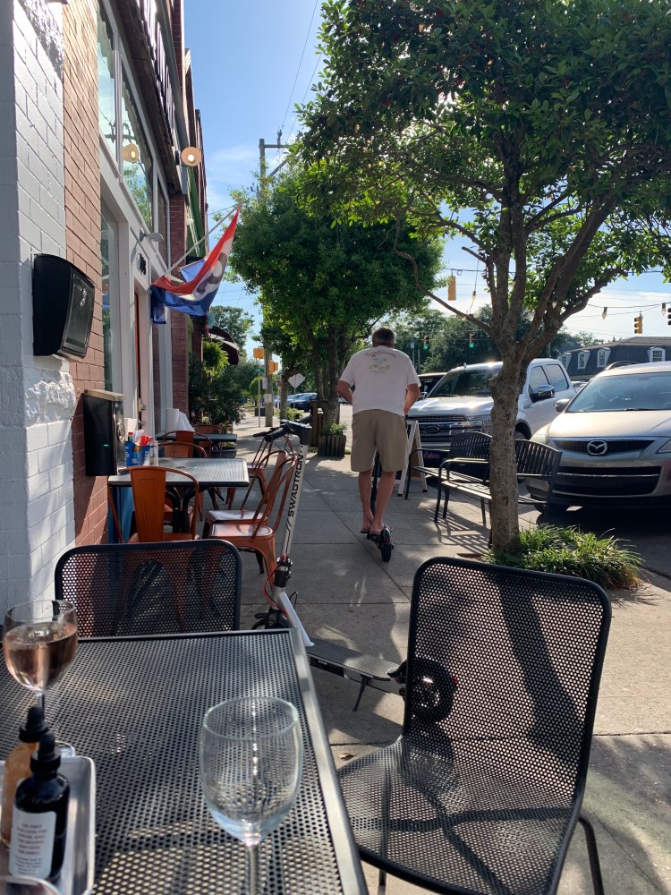 After we docked the boat we took the scooters into town.