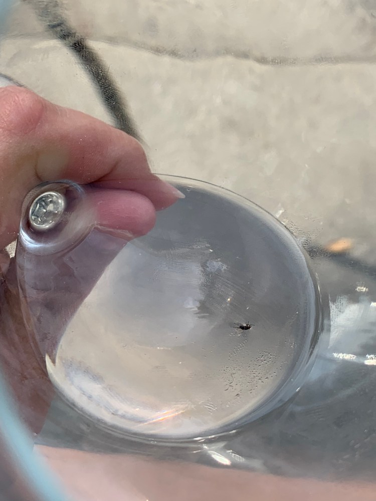 Meanwhile I fished a bug out of my Rose. He got drunk on my wine!