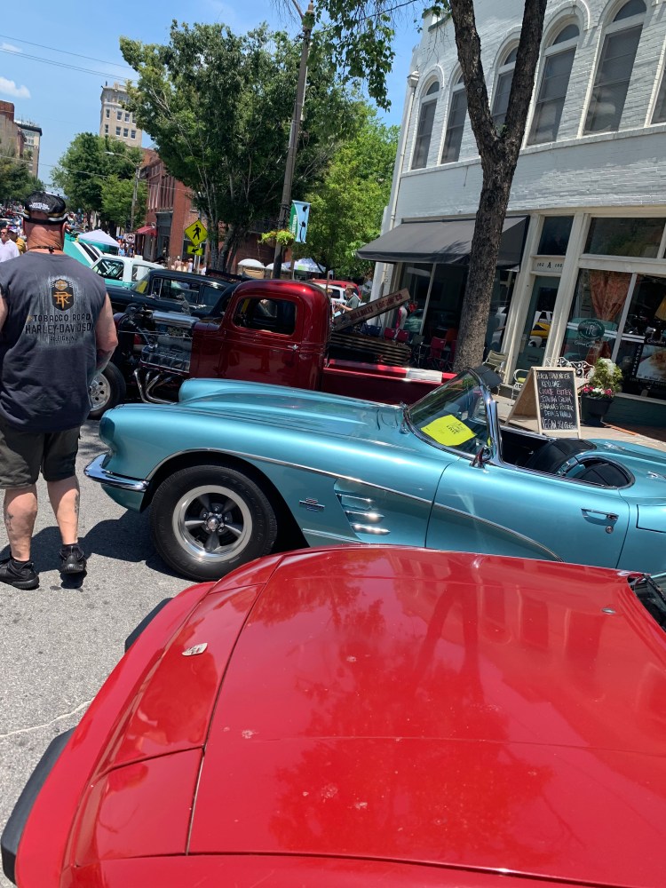 There is an antique car show in town so we took out the scooters and rode around.