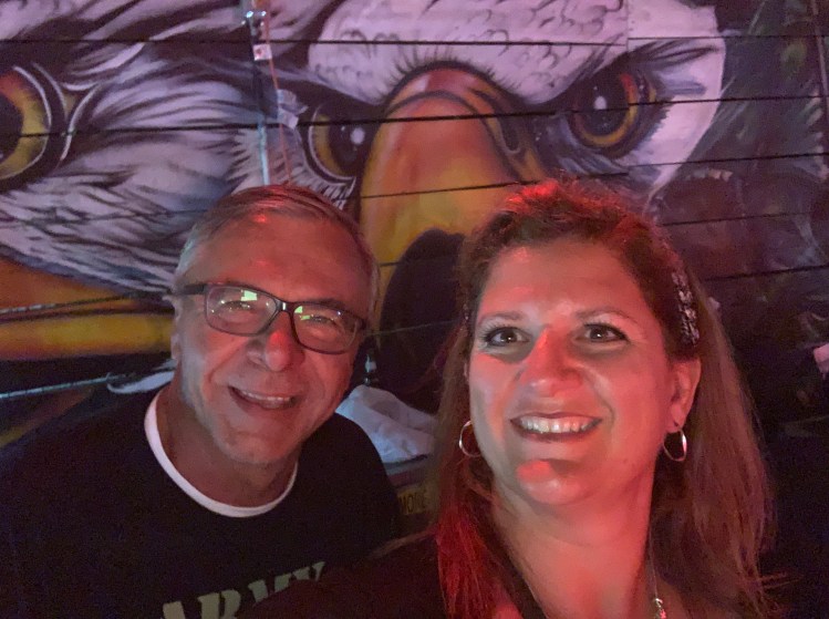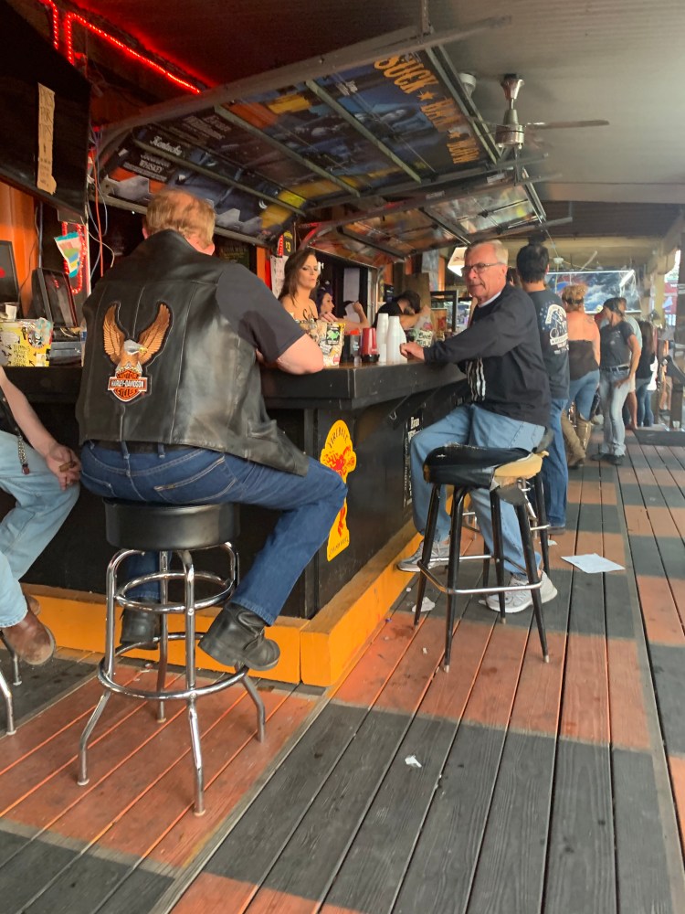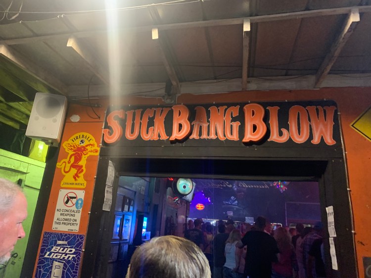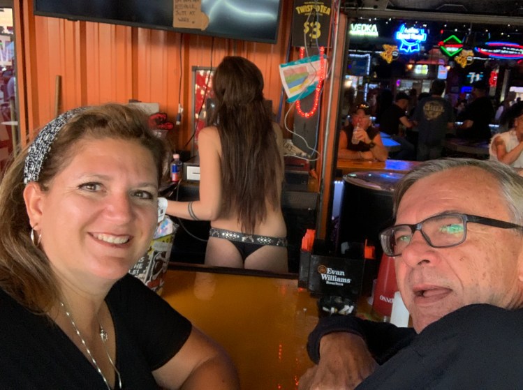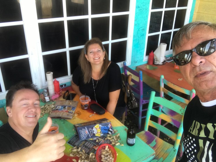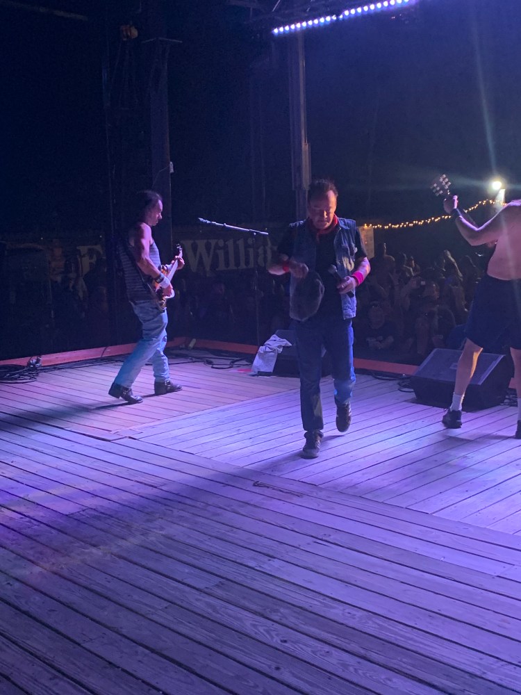 Wilmington wasn’t too far and I drove the entire way because Nick was on a conference call. Once we got our slip, we felt a little like animals in a zoo being watched by the passerbys. That doesn’t bother us much. Nick hopped in a car and picked up an Enterprise Rental car so we could drive back to Murrells Inlet, south of Myrtle Beach. We couldn’t miss a Martyn Jenkins Concert! This was Bike Week and his AC/DC band was the headliner at one of the biggest venues in town “Suck, Bang, Blow”. He’s done this gig for 13 years running! Met up with him before the concert to grab dinner at River City Cafe.