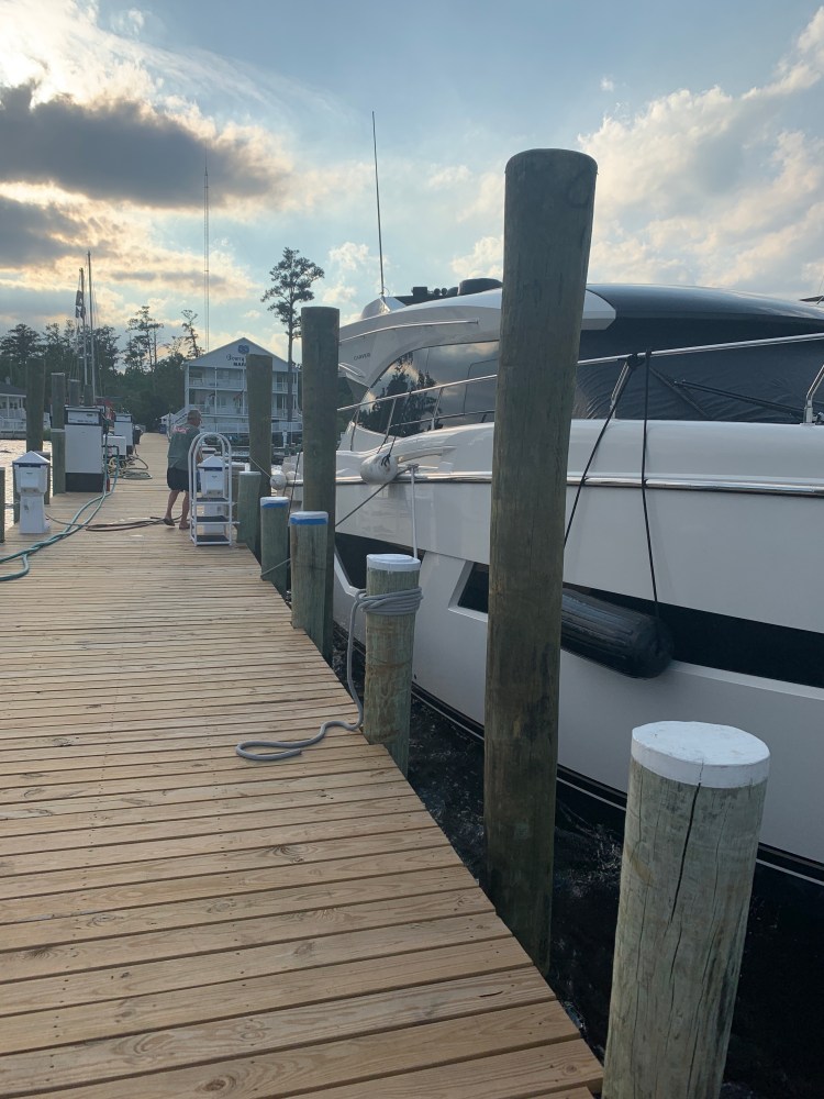 Upon approach we said we didn’t need fuel – which we didn’t. So we docked in our slip. Everything is new here! Talked to Steve the owner. Jeff is the Dockmaster and I think they are all related. They were both telling me about their cousin who is a dentist and has really great bourbon. Sounds like my kinda Dentist – right up my alley! Great guys!