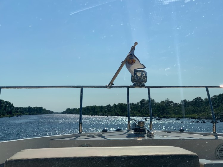 It was very shallow and on our way in we lost a fender. I made the decision to go back for it later because we were in very shallow water. Very very very shallow coming in – the slip was ok just getting out of the boat was a problem, so we asked for another slip and they gave us the long dock for the restaurant. Turns out it’s perfect and we met lots of new friends! they offered to get our fender in their skiff but we dropped the dinghy and got it in no time! Such an adventure. Nick saw the fenders location and said,”I could’ve walked over and got it!” Lol.