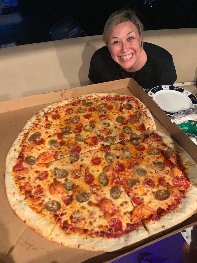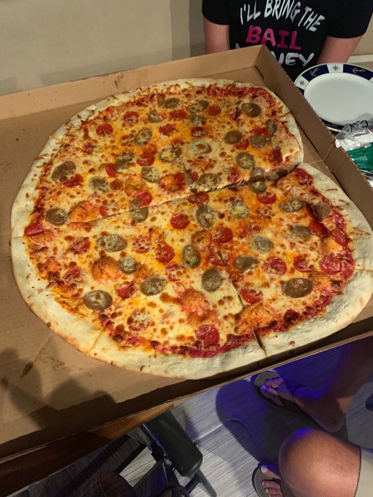 This was the only pizza you can find in Norfolk at 10:15. And we got the last one!!! $42 for 38 inches.