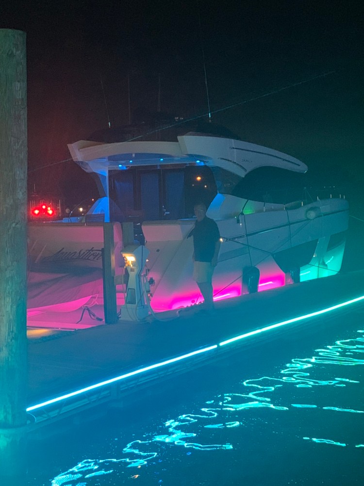 Huge surprise as we got back to the boat. The neon lights on the docks just lit the place so beautifully!!!!