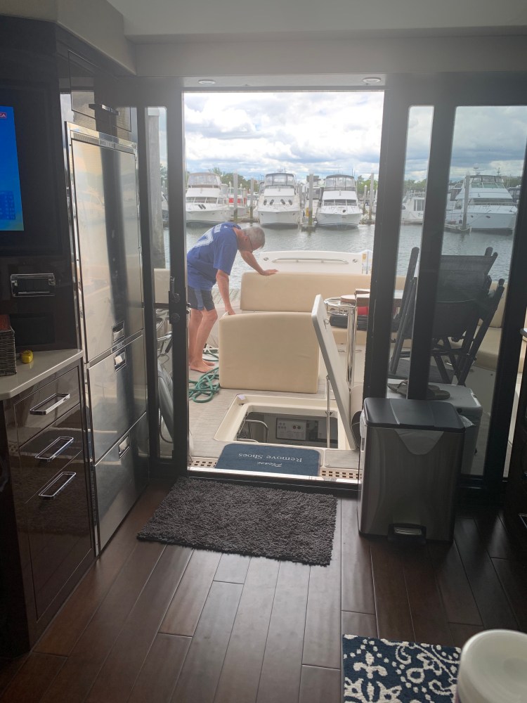 This was a recovery, maintenance, organizing and cleaning day. We were able to sleep in until about 10 am and then Jake showed up. Jake was there to look at the power steering, change some filters and fix the faulty bilge pump and finally fix the freezer.