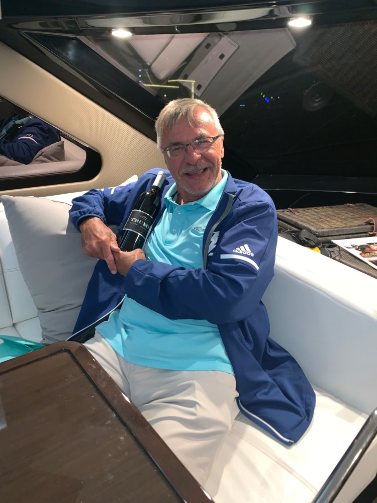 Nick got a fabulous new gift from Deb when we got back to the Aquasition. Trump wine! Happy Birthday President Trump!