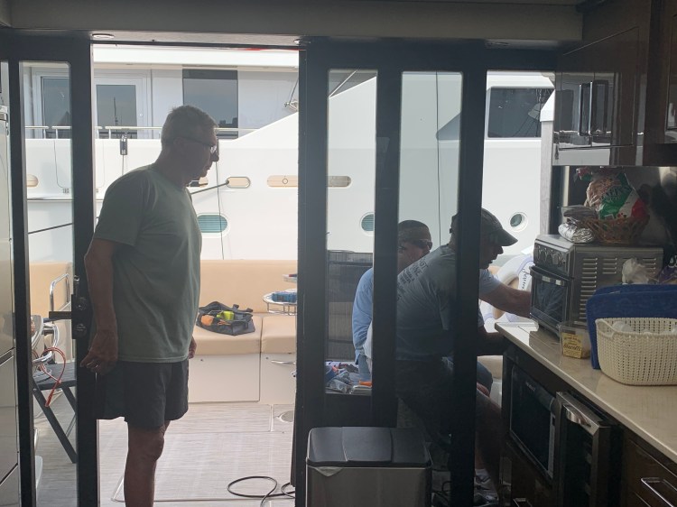 Not fun. But my food can get cold. Except that all my food is bad from being Luke warm for 3 days. So I took an inventory of the food and threw it away. I asked the service guy at Tome George Yacht Sales what he would advise me to do and he said I wouldn’t buy a backup fridge – I would just throw it all away. Nick walked up 3 bags of food and still didn’t get everything.