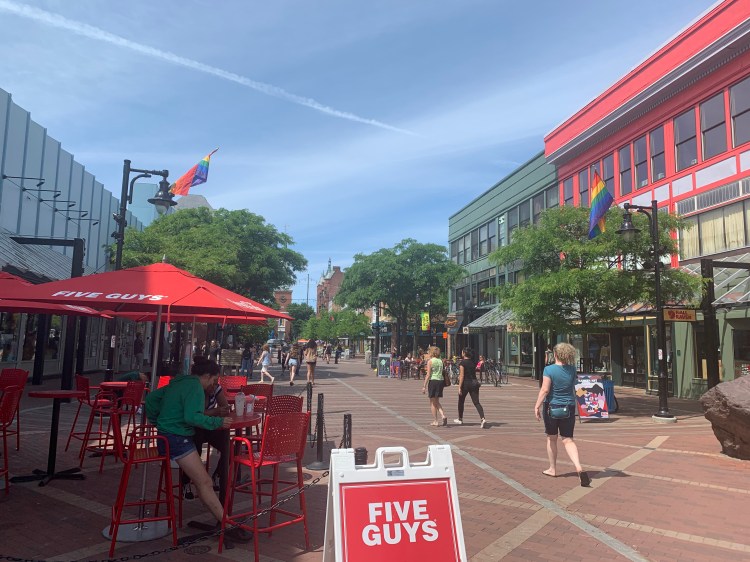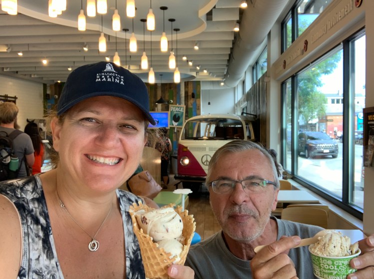So this was an awesome time discovering Burlington VT! It’s a very walking friendly town but we took out the electric scooters. There is a wide and protected bike and walking trail that crosses the driveway of our marina. We took that to town and found some huge mountains to climb! But we made it to Church Street. First order of business was to grab lunch. We found this spot for a great sandwich and a beautiful view!
