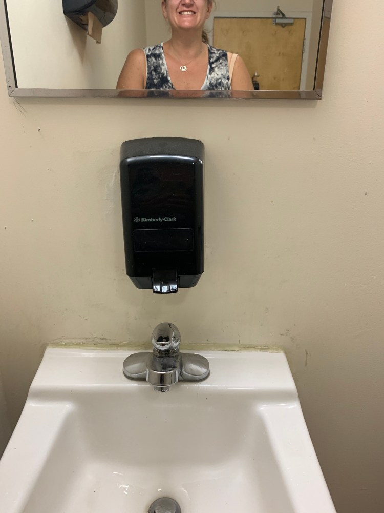 One more stop for coffee and a potty break brought about this photo. I’m so sorry about this but I can’t believe how stupid people can be! This is the worst soap dispenser placement I have ever seen!!!