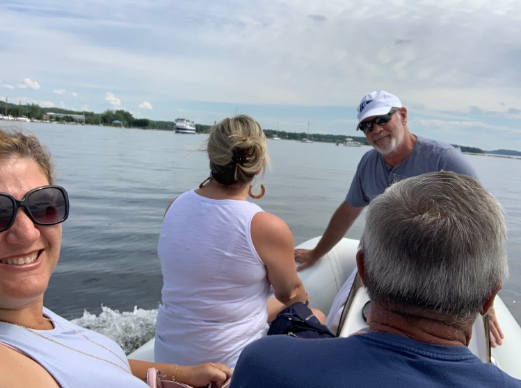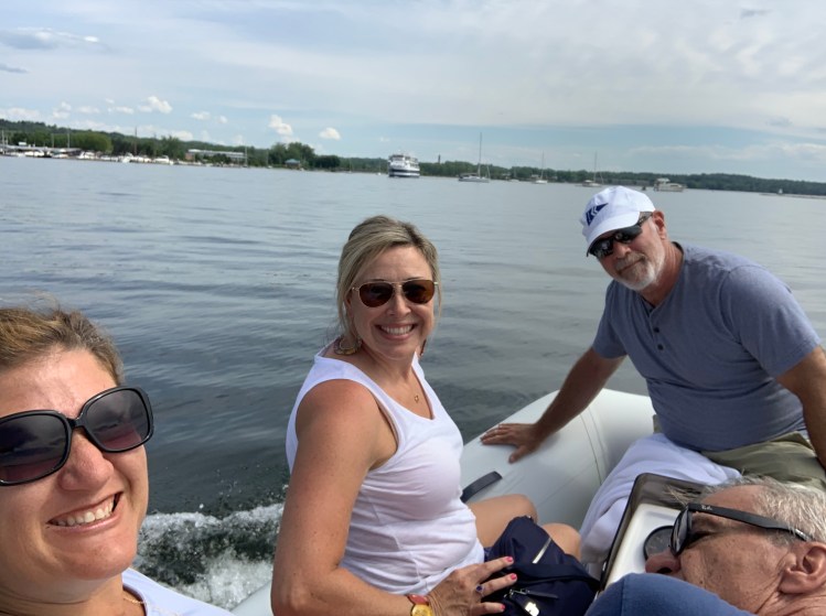Then we took the dinghy to AnneMarie and Jim’s boat to hang out before the train ride.