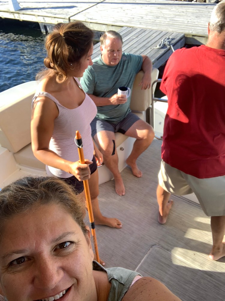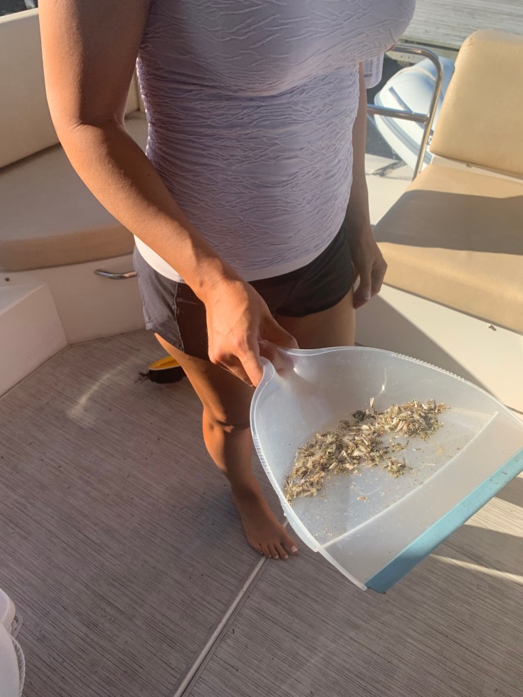 We got to our marina where Racquel and I checked in and asked for a free map that we saw on the wall. Well, he couldn’t find anymore maps but wanted to please us so he ripped that one off the wall and gave it to us – paint chips and all!