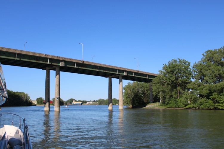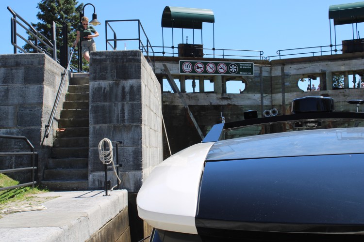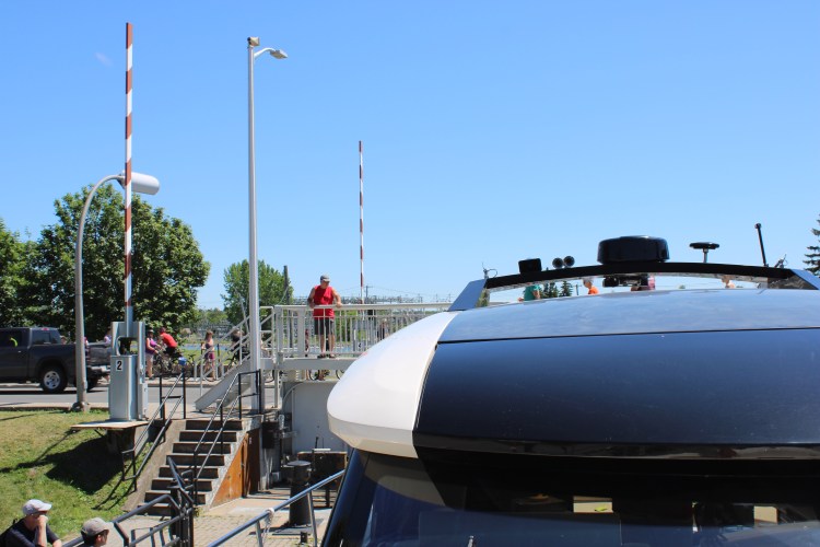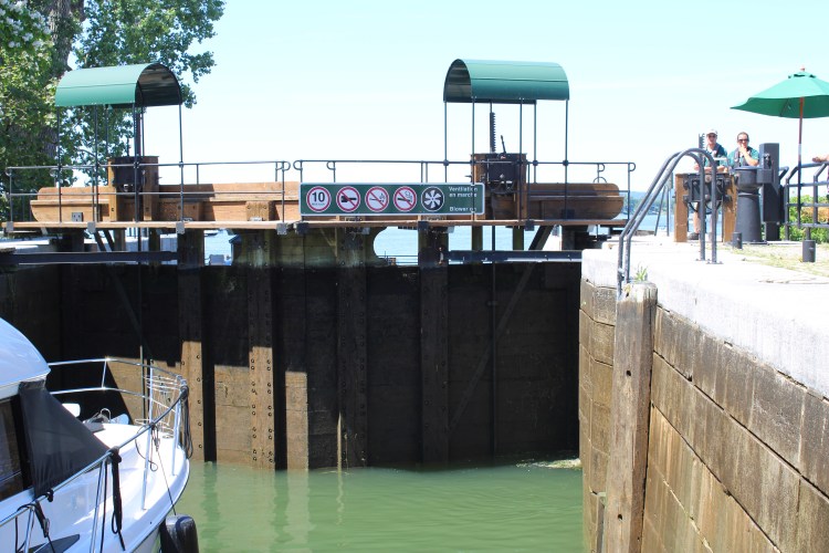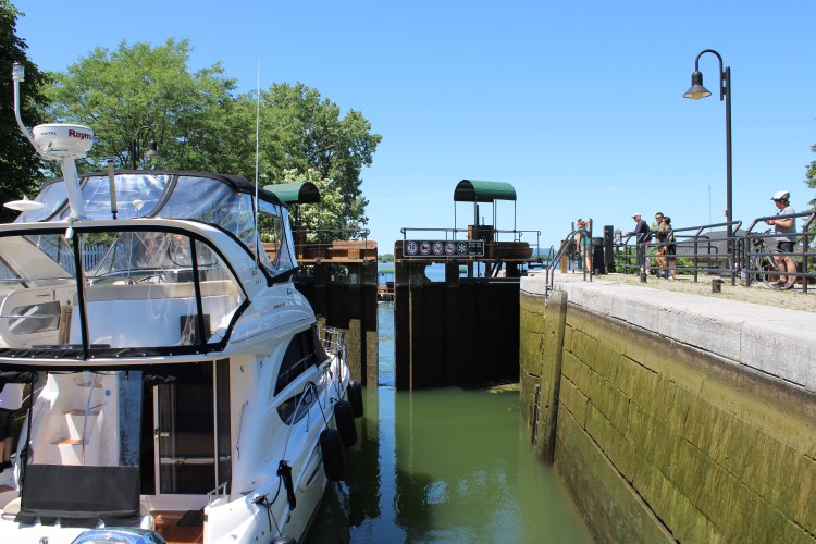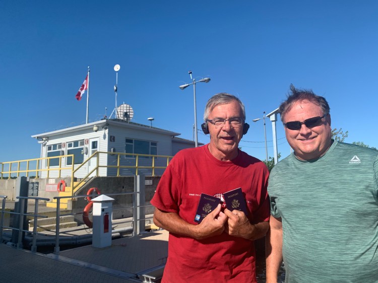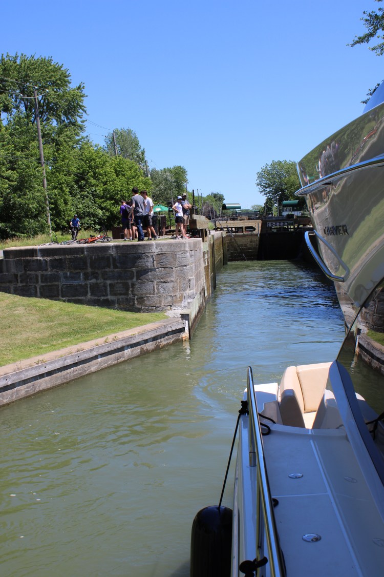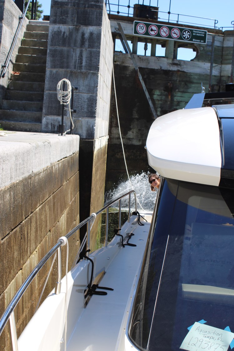 10 hours, 10 locks, 75 miles and only 4 sandwiches. What a huge accomplishment! We could not have done it without Terry & Racquel! They are locking experts! The day started at Canadian Customs where I had my pepper spray taken away from me! Thanks Nick for giving me up – I guess pepper spray is illegal to our friendly neighbors to the north. Bye bye…
