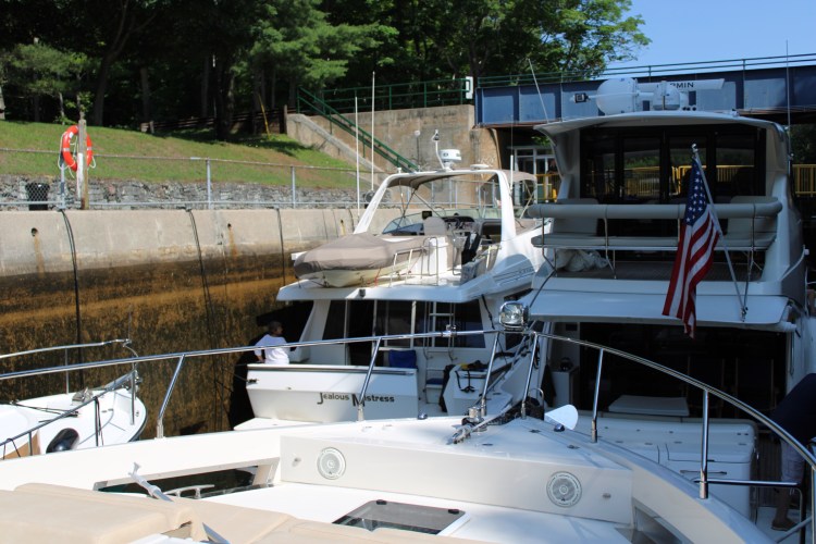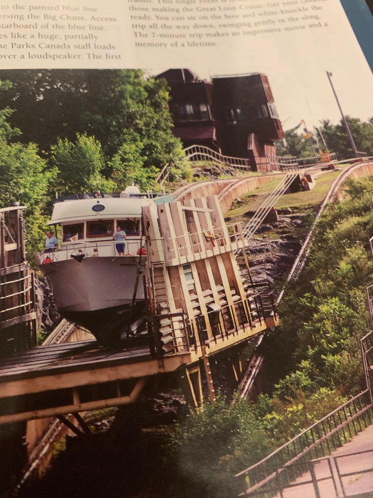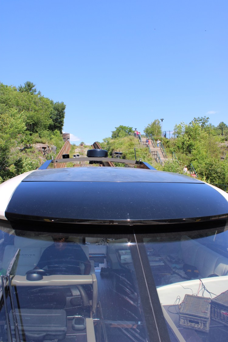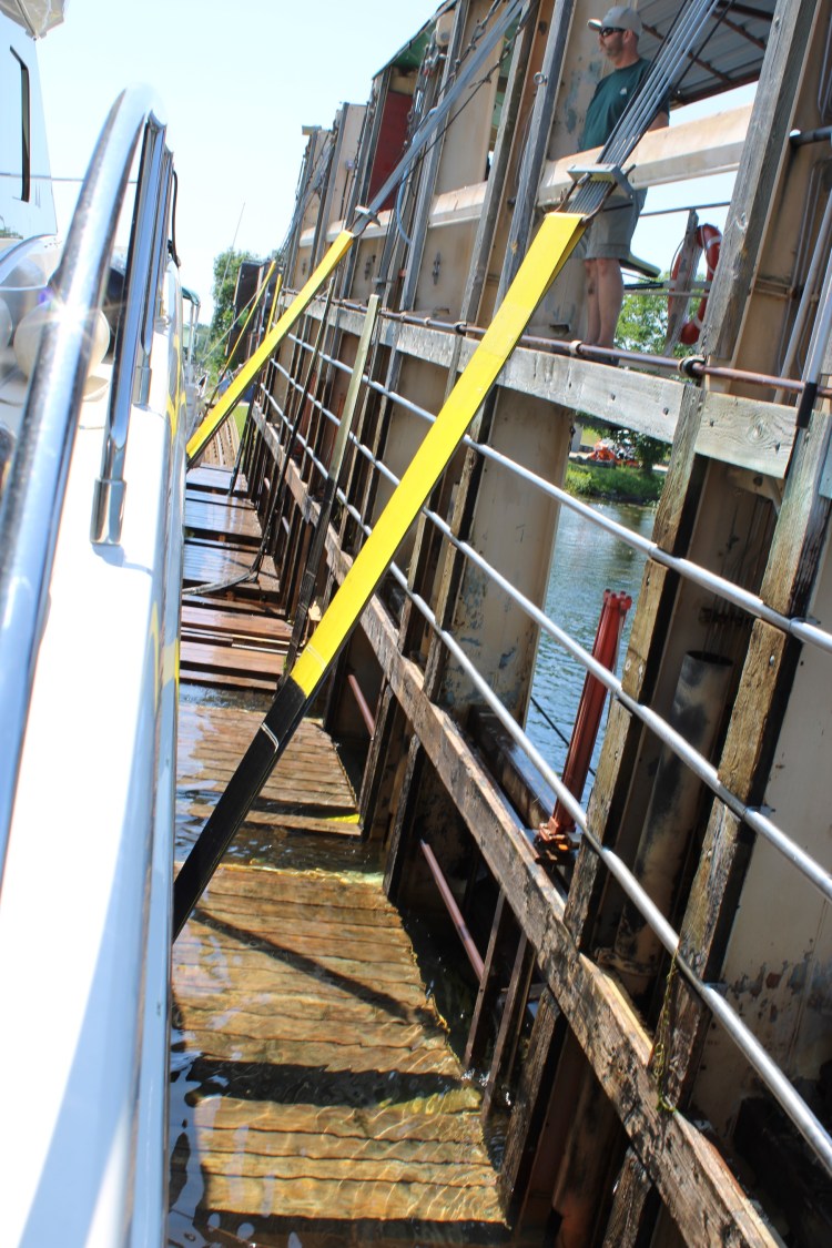 We arrived and tied off at the usual blue wall (as all locks). This isn’t really a lock at all. This name says it all. It’s called Big Chute Rail!