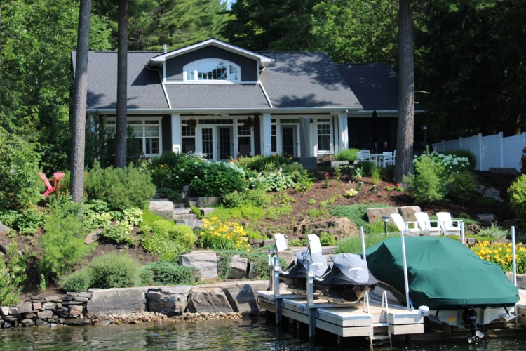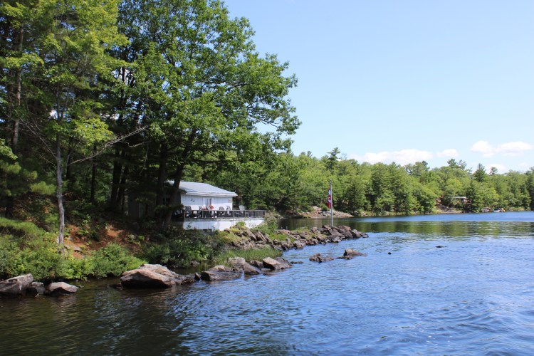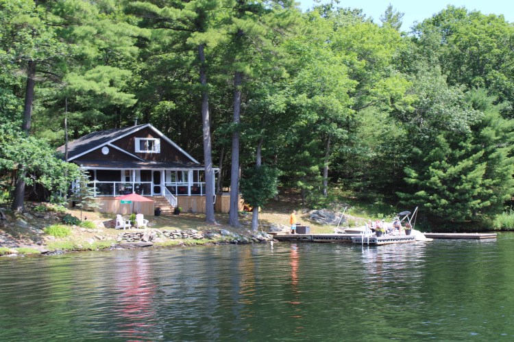 This is the Severn River and Sparrow Lake. It is wedged between red and gray granite walls cut by glaciers to form the fjord like cliffs.