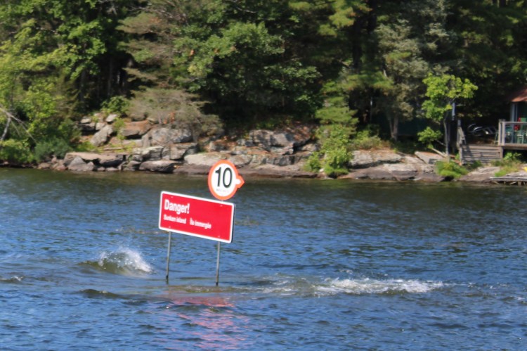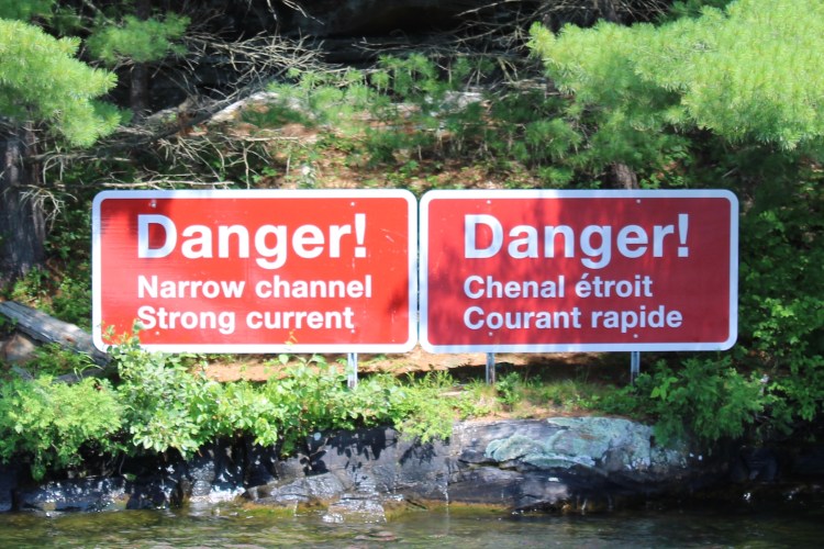 Next up was another very narrow channel with granite and warning signs to match!