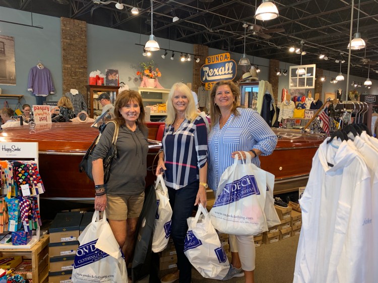 We sat on the deck and I had some amazing shrimp! But that was not to last, as we had more shopping! We went to Bliss next where I took advantage of their free wine!!!