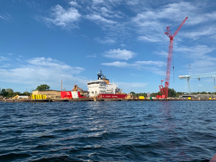 We got to hear about the freighters that are built and repaired right here in Sturgeon Bay. This first ship is a US Coast Guard Ice Breaker ship.
