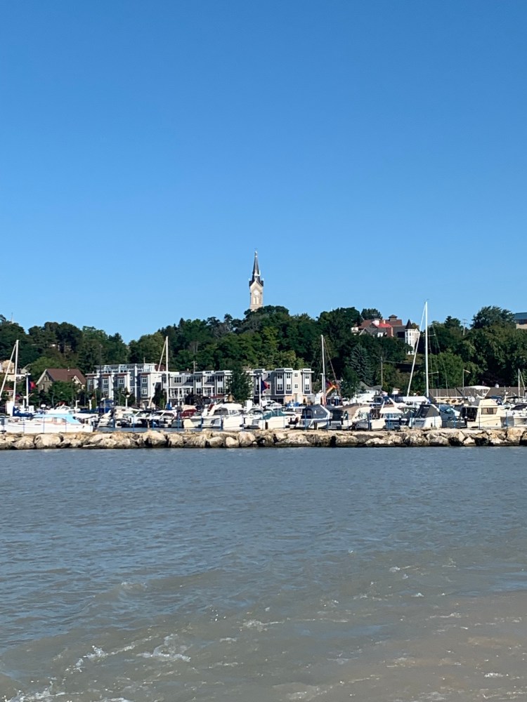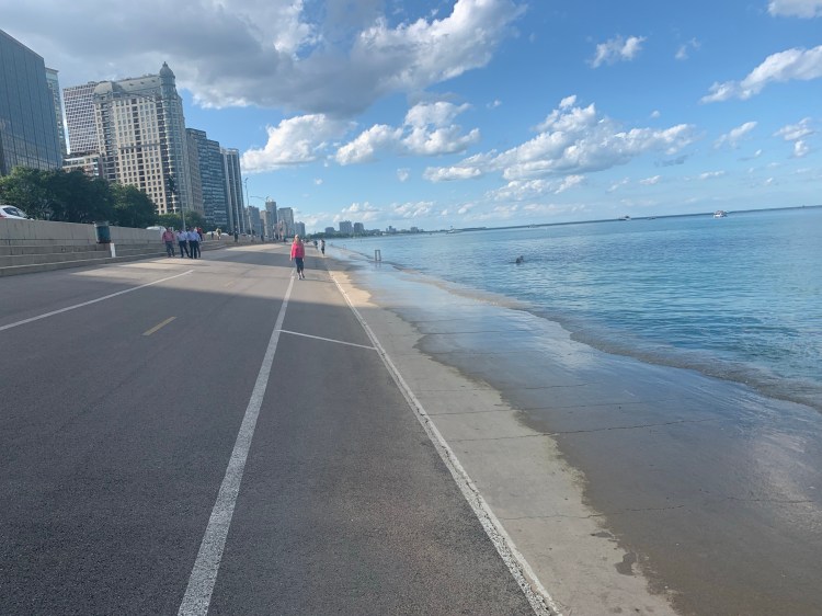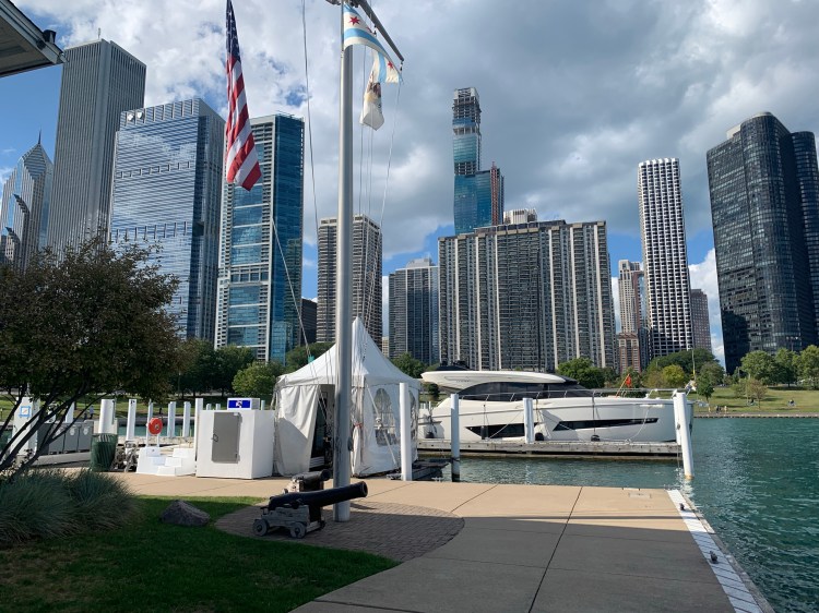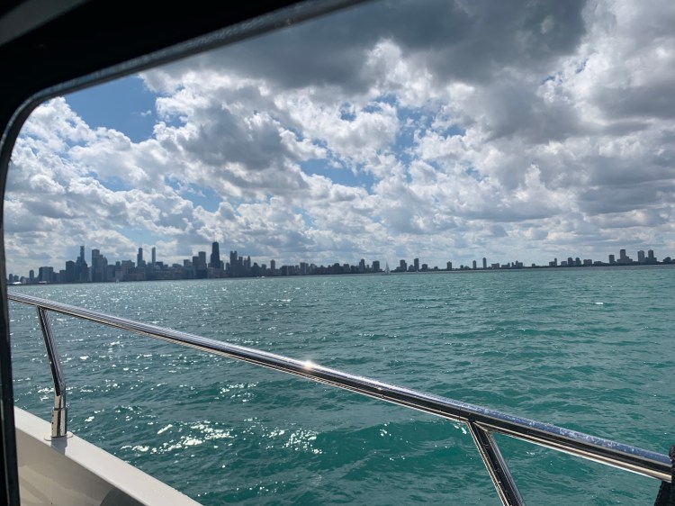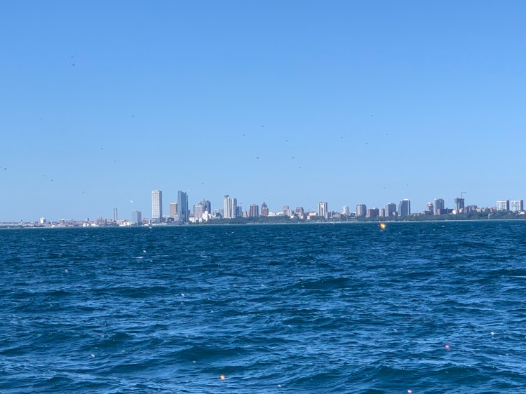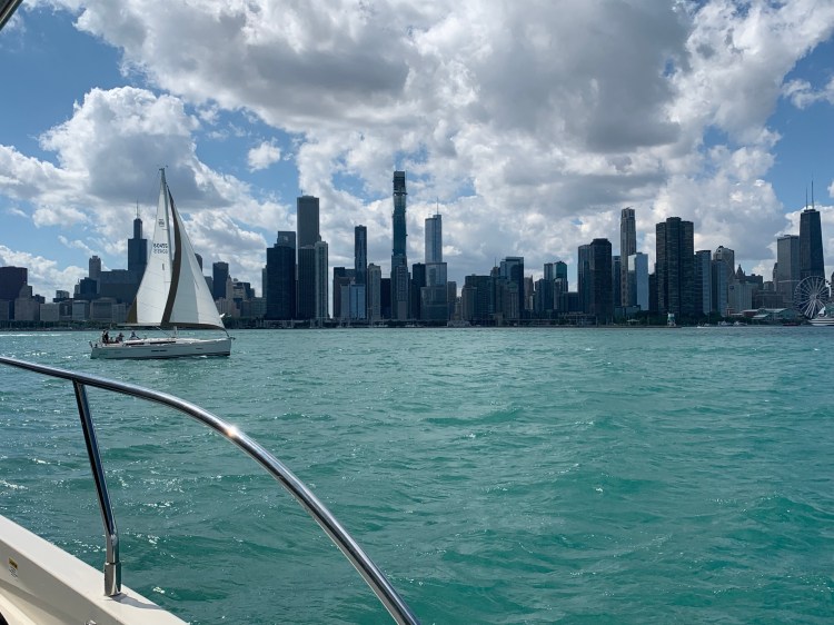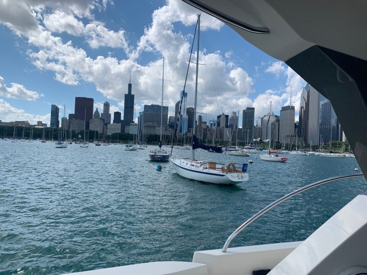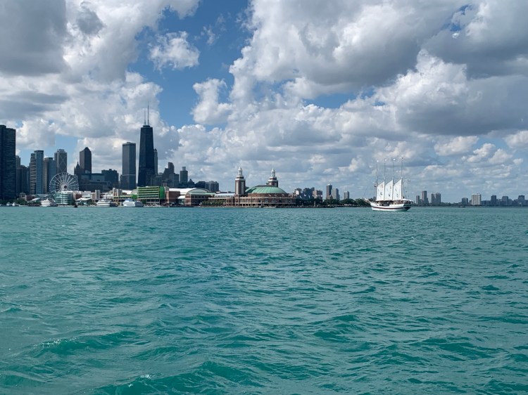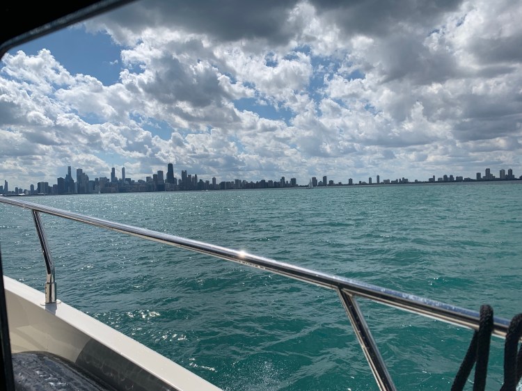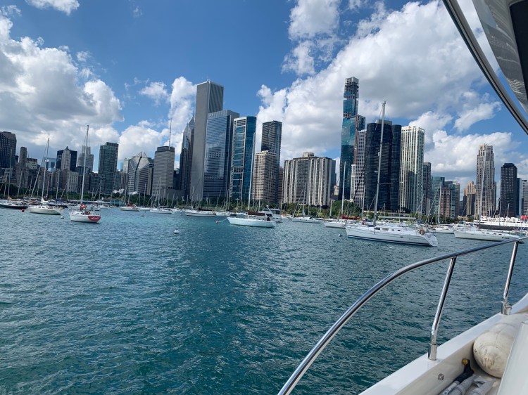 Pulling into Chicago harbor was challenging because the water levels are so high that the breakwaters are mostly submerged.