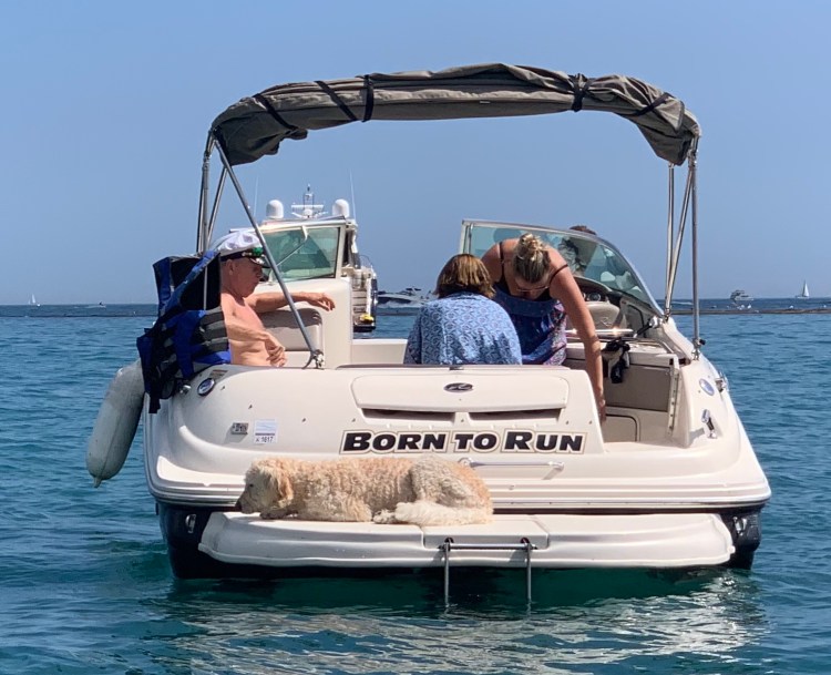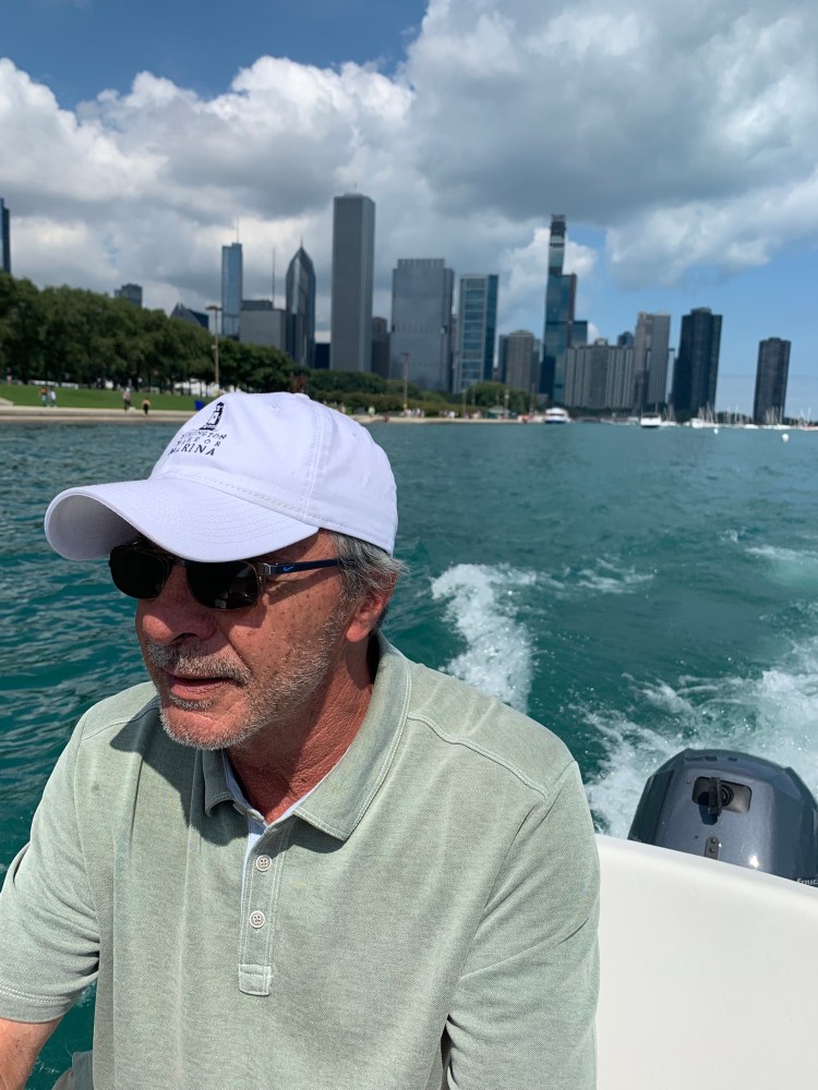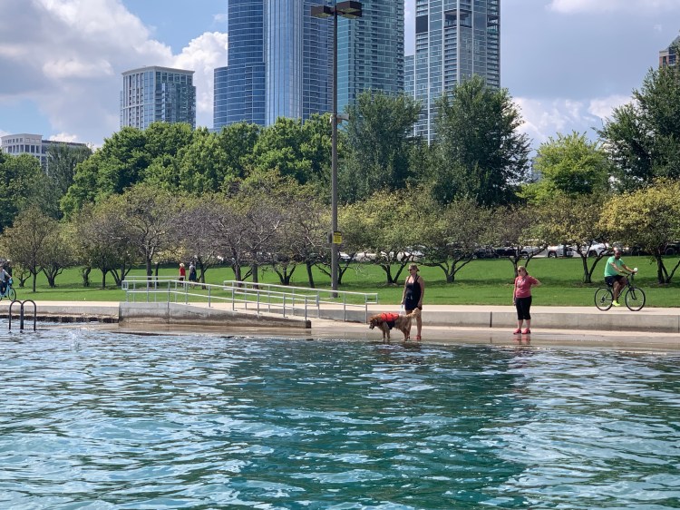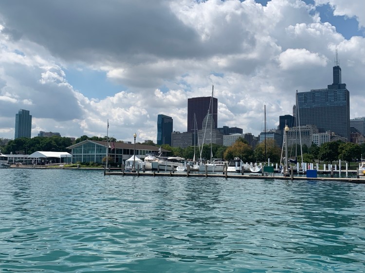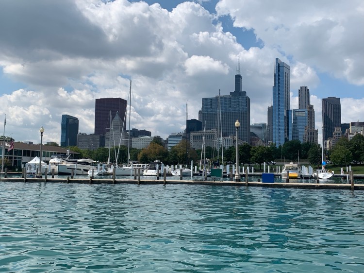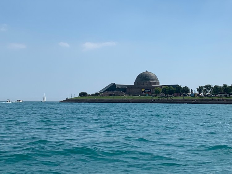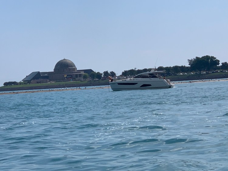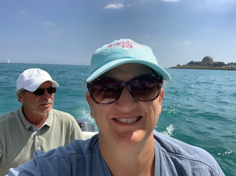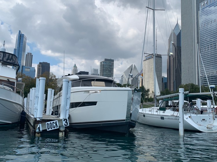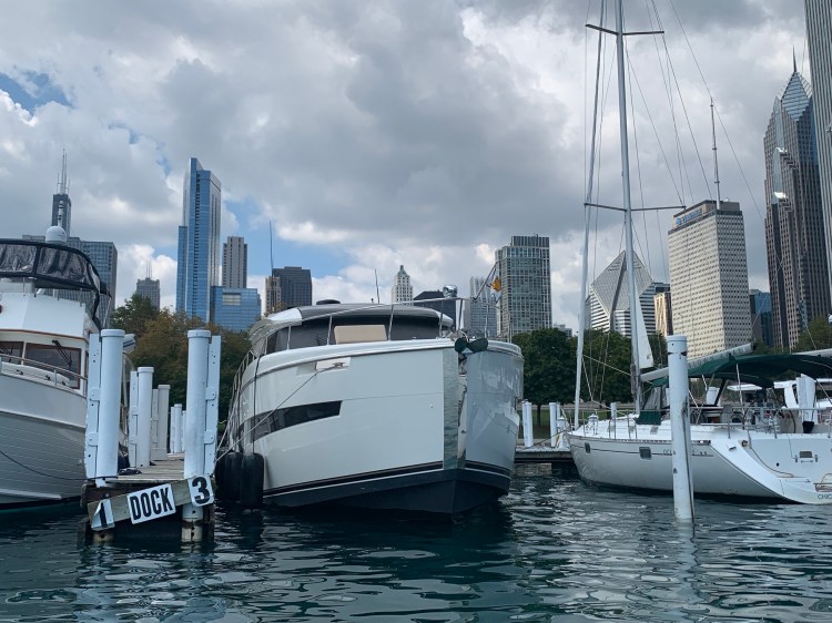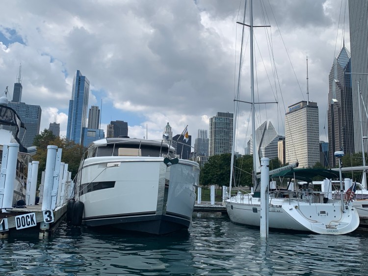 We saw several boats anchored near the Shedd Aquarium. This one caught my eye. This dog was really relaxed on the swim platform of this boat.