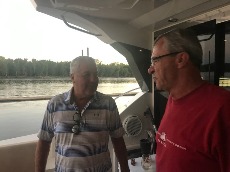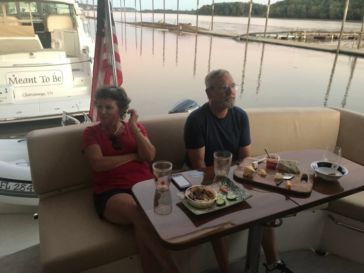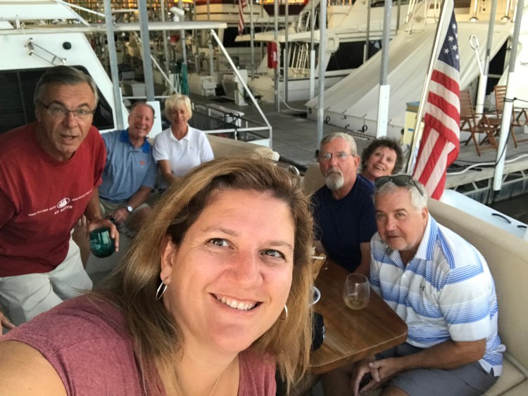 It was a lazy day. We talked about going to the pool but never went, we talked about going to the Art Museum but it was closed, we talked about going to the Arch – so we started to rally. Then Peggy (from No7 boat live aboard) came down to ask if we needed groceries and she told us that it’s usually a 5 hour wait if you don’t have reservations. So we didn’t do that. Soon I found myself reading the Garmin book and watching TV. When dinner rolled around I asked Nick is we could invite people on the boat for Docktails! He said yes and started texting. Pretty soon it was a party!