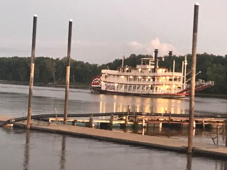 It was a sleep in kinda morning. Nick had another coughing spell so neither one of us got much sleep. When we woke up we got several things done on the boat. While Nick cleaned all the filters and found sandy mud and leaves in them I ran down to Peggy and asked her to pick up some NyQuil on her run to the store. I did all the laundry and dusted and Then cleaned out the kitchen cabinets. I went out to check on Nick’s progress and I saw this cool dinner cruise but it was really lunch time? After a search online, I discovered it sometimes a sightseeing cruise and it launches in the morning!