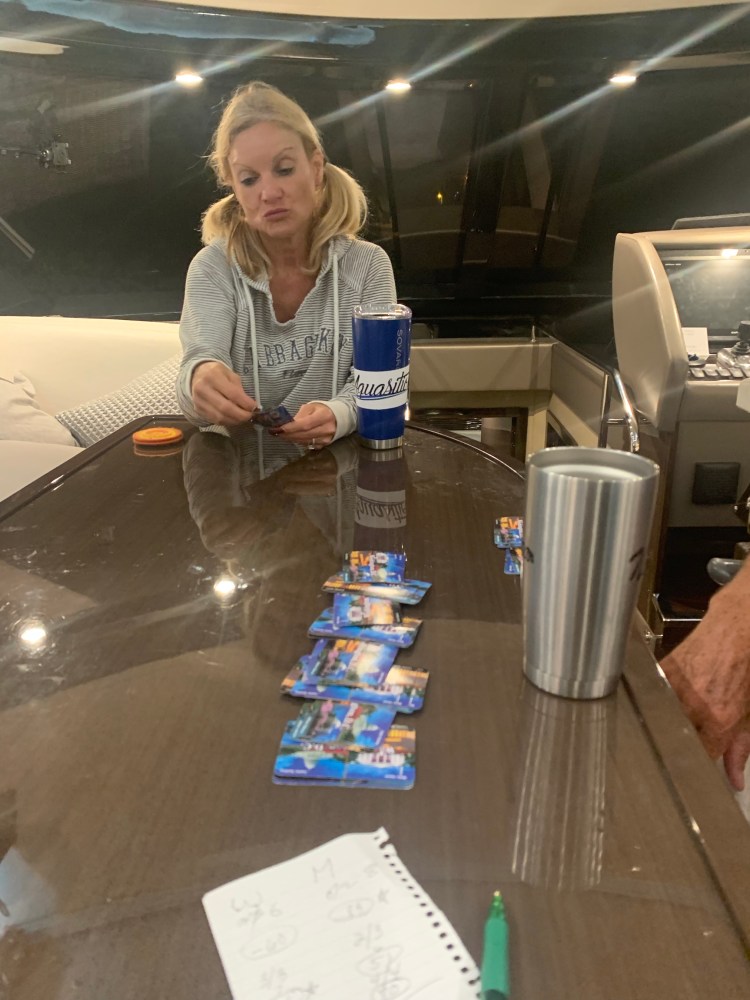Once everyone went back to their boat we ran to the golf cart and zoomed to T Lawson’s for dinner – dam! They were closed! So we ran to the Tipsy Turtle and lucked out! Grabbed dinner then went home to play Spades.