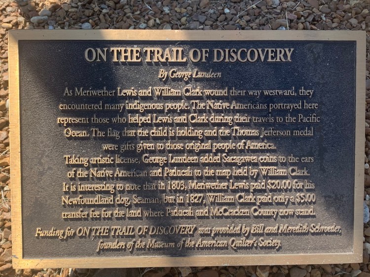 This plaque told of how Lewis bought his dog for $20 but the entire county where Paducah sits he paid only $5. Why is that something to engrave on a plaque and commemorate in the very town that got cheated?