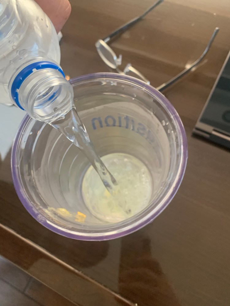 After dinner Nick was in need of some Airborne to try and stop this cold he was getting. But he wouldn’t wait for it to dissolve!