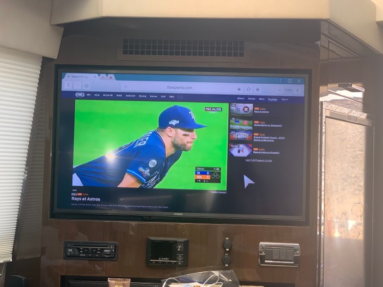 Then when I got back I started chopping and working on the cooking the chicken and Nick was working on getting the Rays on TV! They are in the play offs!