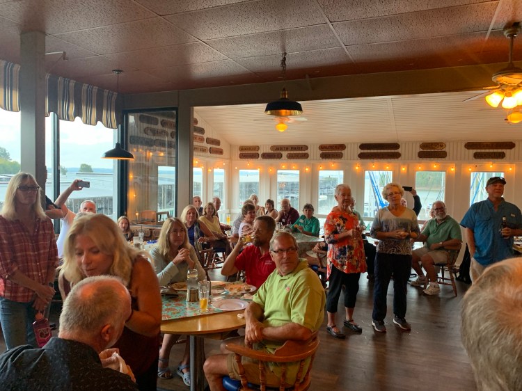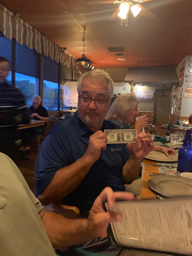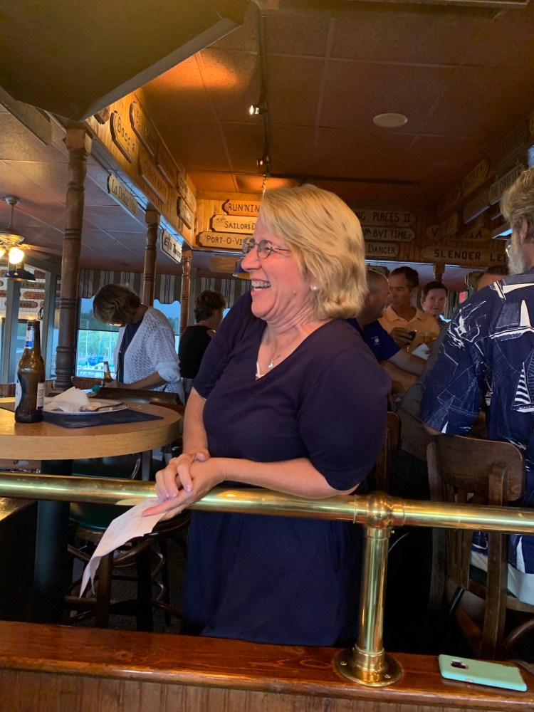 It was another slow day for the Galambos’. We both came down with some wicked colds. And despite me making homemade chicken soup and hot tea every moment – just struggled all morning. But we had to rally because of the Looper Happy Hour a few of us set up! I had reached out to Susan Costa of Lucky Me and Mary of Pegasus and we coordinated with the Commonwealth Yacht Club for a nice half price drinks happy hour and hors’doeuvres! Susan also got small prizes and did some cute contests of “oldest” boat, nearest to home, newest looper. It was a blast!