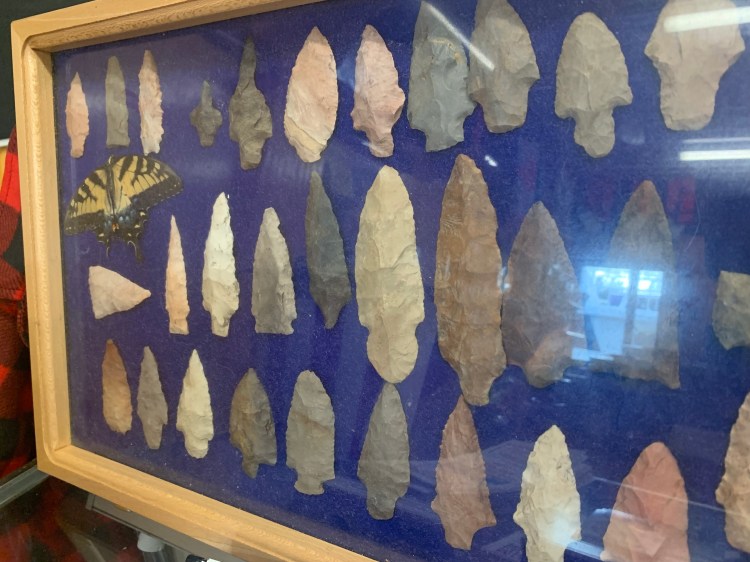 This is a picture of the marinas collection of Indian arrow heads that have been found on the banks of the Tennessee River in this area.