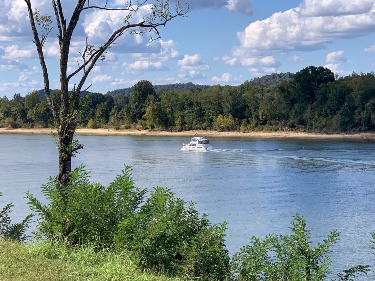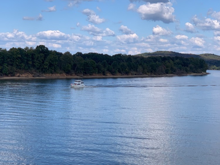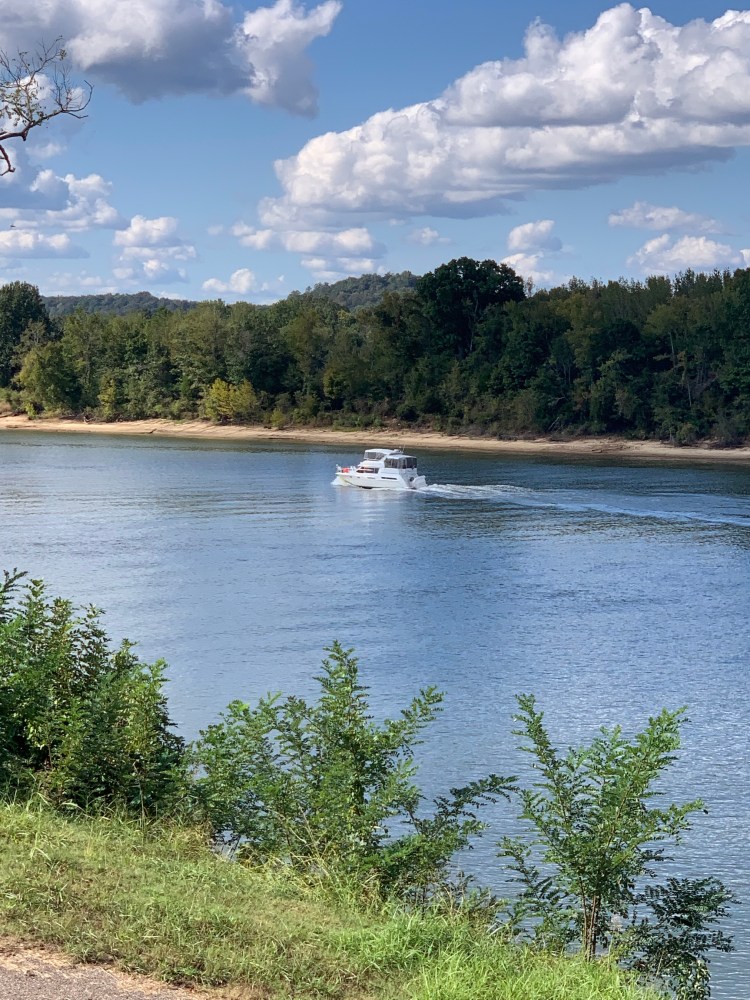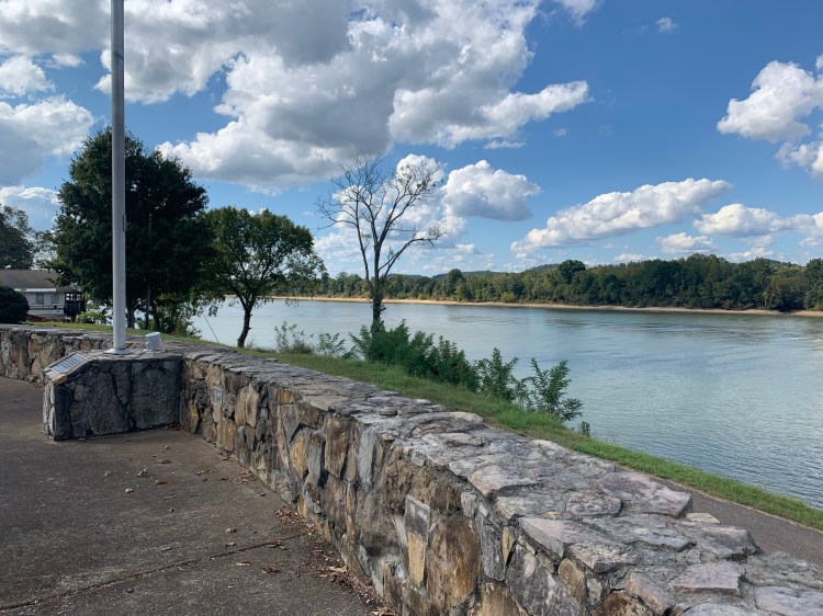 But the solemn and strong statement of these plaques did not overshadow the nature of the Tennessee River this spot governed.