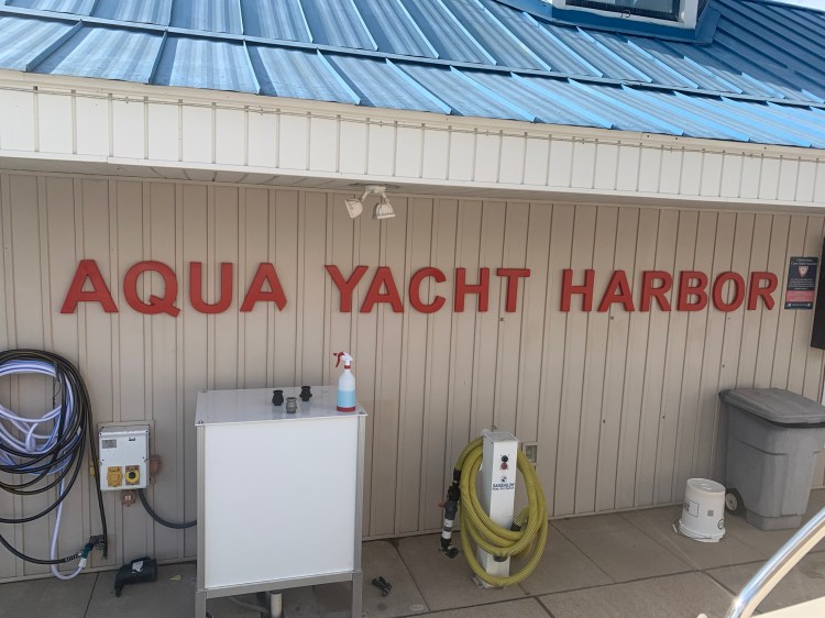 We were told it was the best. But I wasn’t convinced! When we got there the current was really strong and tried to push us into the fuel dock hard but Captain Nick and his nerves of steel gave a gentle landing and we fueled up! All these slips are covered so there will be no Satellite TV!