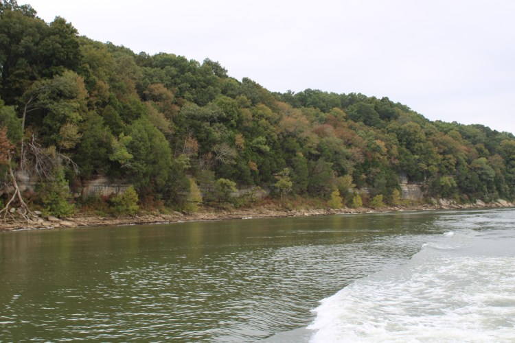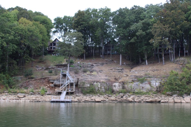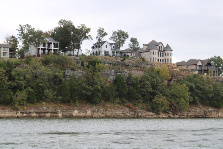 There was a black cloud hovering for a while but it never rained. The sun kept peeking through. For the most part the scenery was green and some hills but about half of it was carved cliffs and bluffs like these! So many beautiful homes over looking the river.