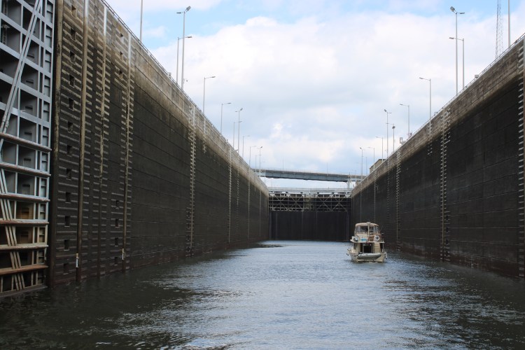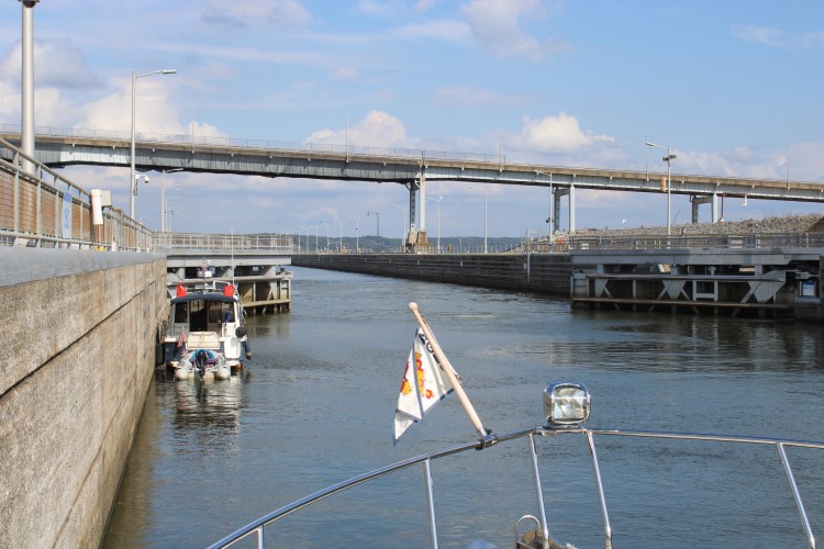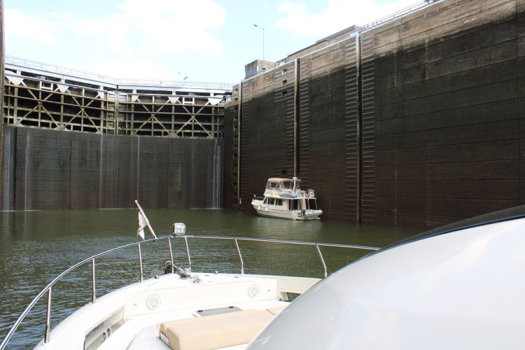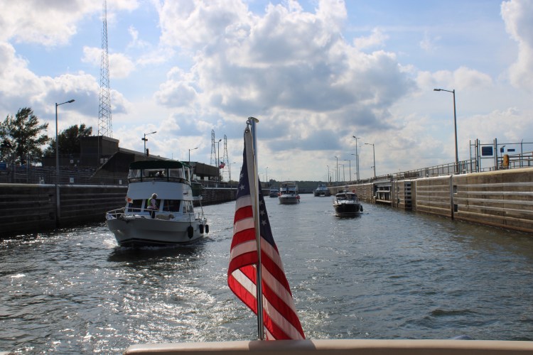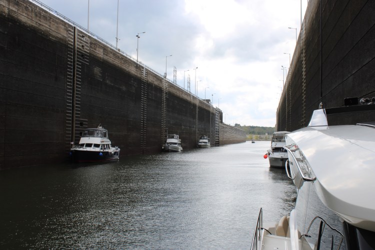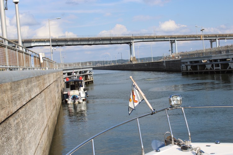 Once we were all in position Captain Nick hailed the lockmaster and said all 6 boats were secure. Then we heard him say he saw a few more on the AIS. So I guess we will wait.