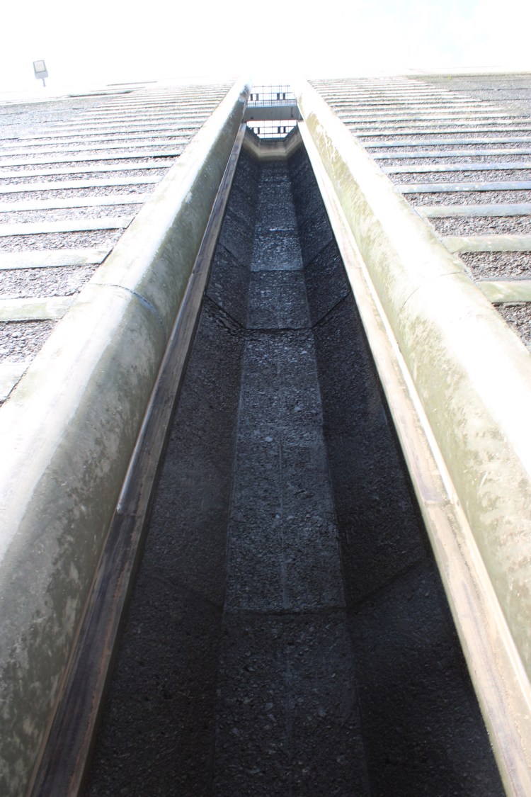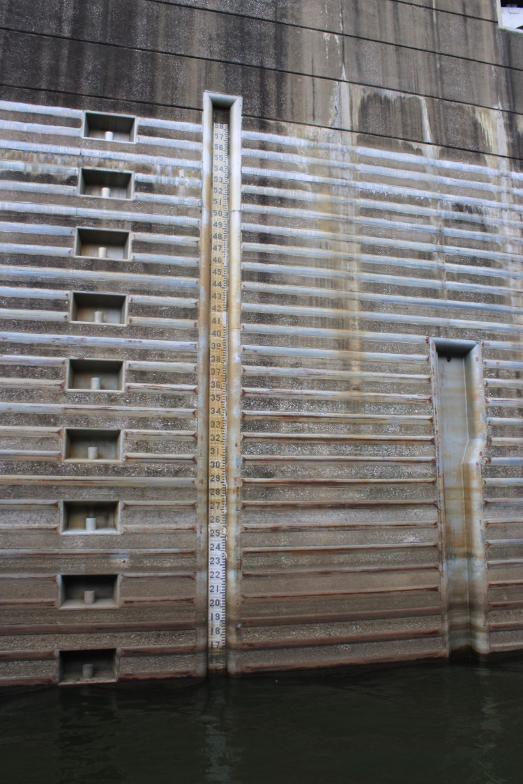 This is a look up from the bottom of the boulder that moves as the lock fills.