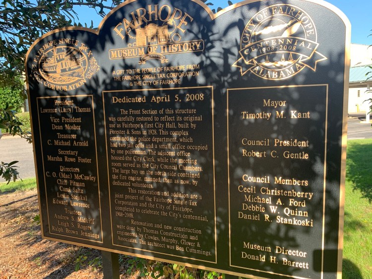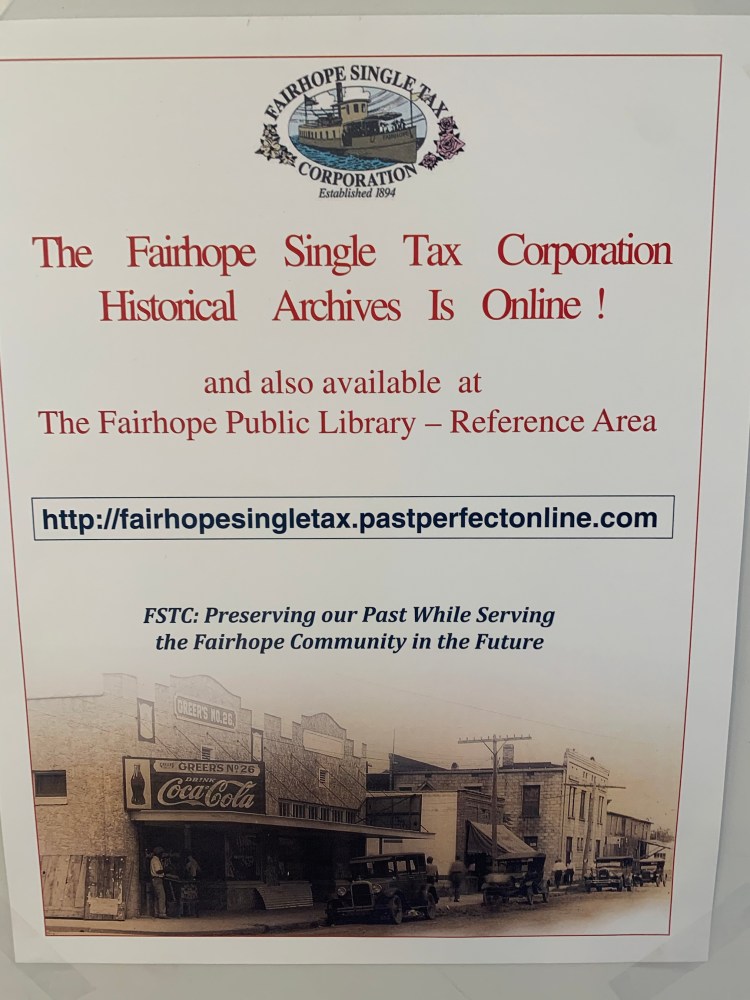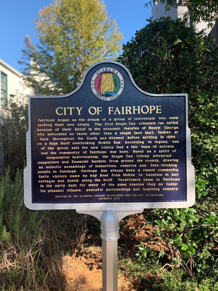 And then the Fairhope Museum. The story of Fairhope is very interesting! It was a utopia thought up by Henry George of Iowa. He moved here along with 28 followers in November of 1894. The were out to create a Single-Tax community.