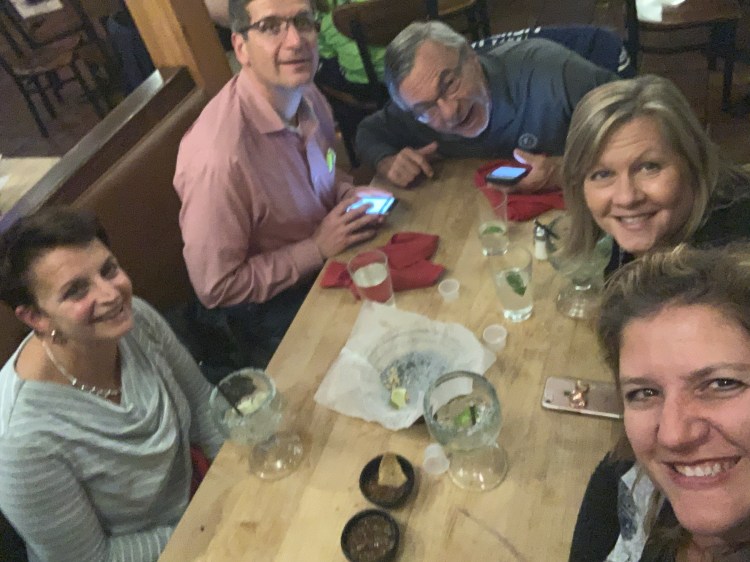 We helped her get her room organized again. And it started to get very crowded as more and more family members showed up to have lunch with Mom. My niece showed up with her 3 week old baby and they all wanted to go to the Bistro for lunch so, Nick took me and Mindy out for a burger. It was a busy day for Mom with all the out of town guests. We planned a dinner with Don and Mindy and Carol!!! Fat Rosies has the best Margaritas!!!