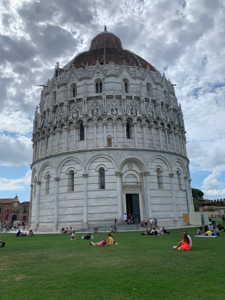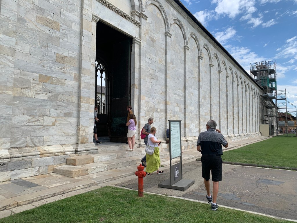Pisa side trip. We had a pretty good tourist plan today. Headed to the Field of Miracles. We wanted to visit the leaning tower and the duomo. Nick had pre purchased our train ticket but we were ready early. So we headed over to see if we can take an earlier train. This was not a problem as the Italians don’t keep strict to a train schedule and no one checked our tickets.